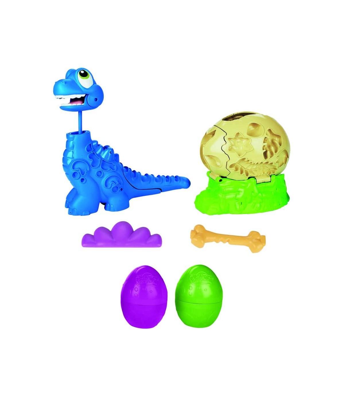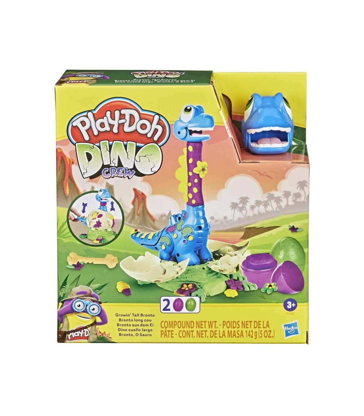 Incluye set de Dino cuello largo, cortador de crestas, cuños de huesos y 2 huevos llenos de plastilina Play-Doh (peso neto: 142 g).