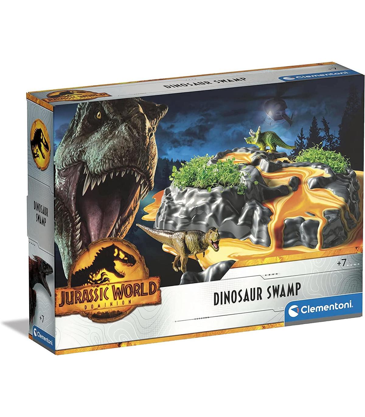 ¡Recrea un paisaje jurásico con muchos experimentos científicos y figuras de T-Rex y Triceratops!