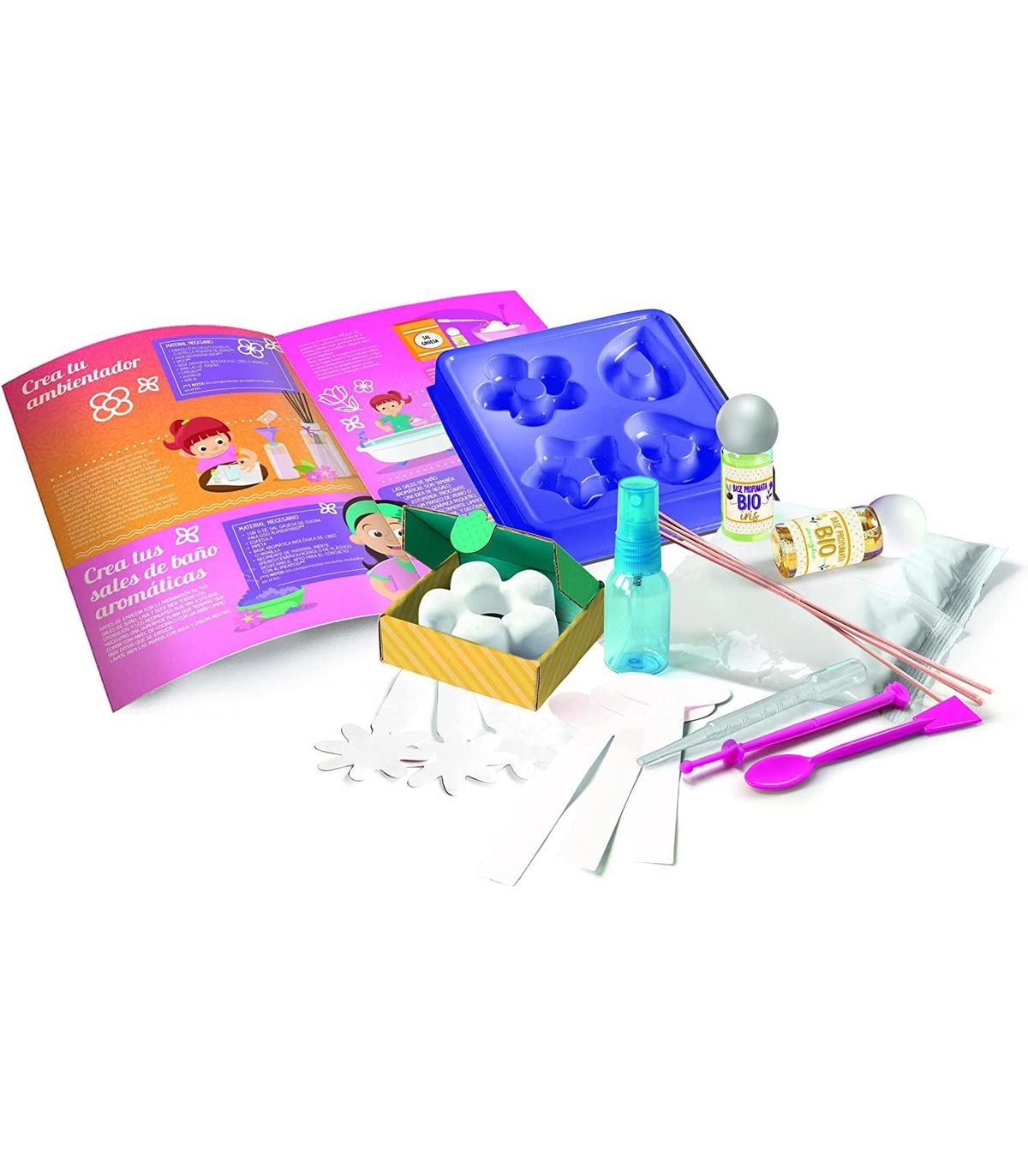 Contiene todos los ingredientes para experimentar con la ciencia cosmética y crear perfumes y tizas aromáticas con tus propias manos
