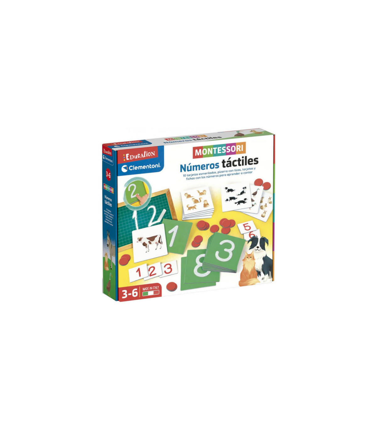 Contiene 10 fichas númericas esmeriladas, es decir, con un acabado rugoso especial que se puede tocar para memorizar la forma.