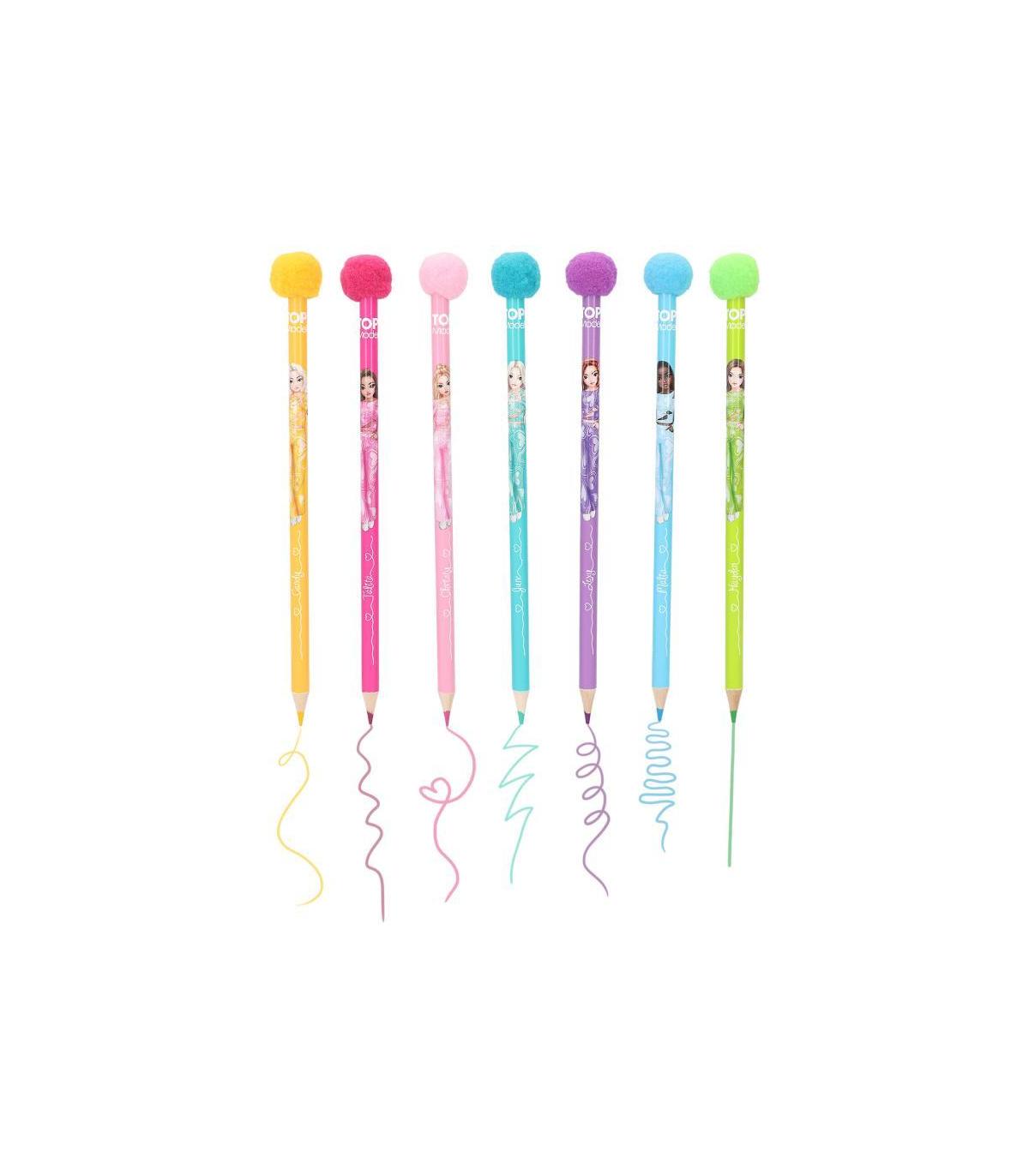 ¡Cada lápiz de color lleva un pompón para destacar a lo grande! Y cada lápiz lleva el diseño de una modelo distinta: el amarillo lleva a Candy, el fucsia a Talita, el rosa a Christy, el turquesa a June, el lila a Lexy, el azul a Malia y el verde a Hayden¡Cada lápiz de color lleva un pompón para destacar a lo grande! Y cada lápiz lleva el diseño de una modelo distinta: el amarillo lleva a Candy, el fucsia a Talita, el rosa a Christy, el turquesa a June, el lila a Lexy, el azul a Malia y el verde a Hayden.