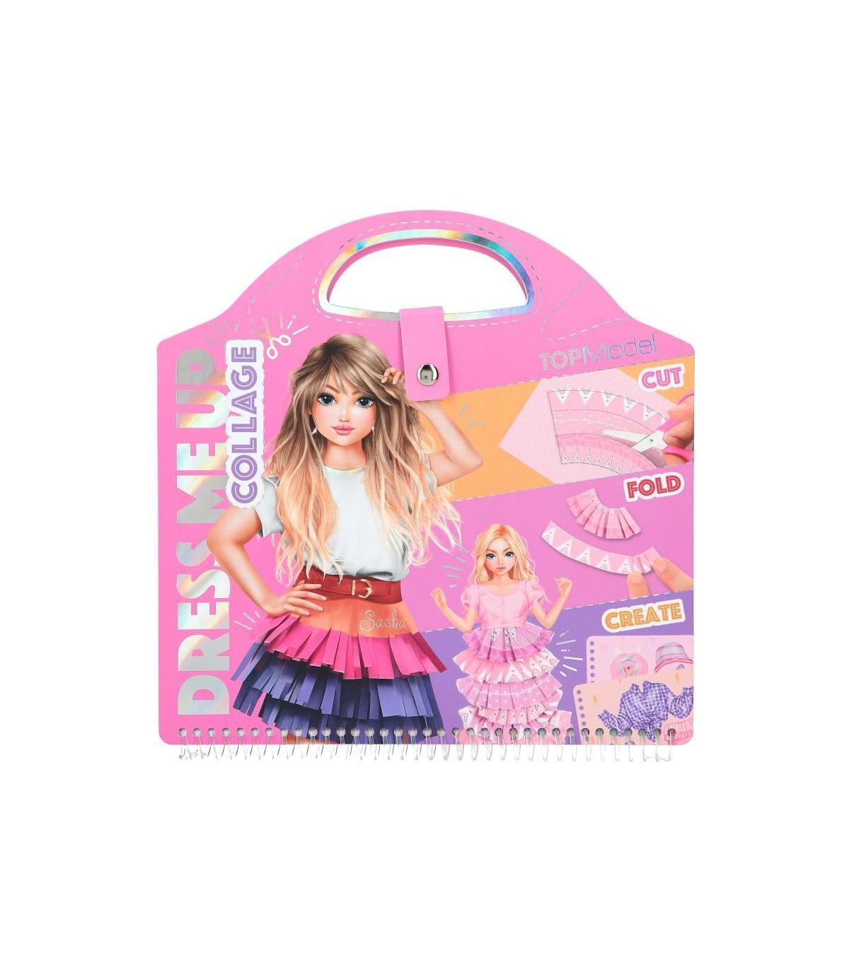 Topmodel Dress Me Up ¡Para llevar fácilmente a todas partes diseños chulísimos! El cuaderno de dibujo de TOPModel con forma de bolso con cierre de presión tiene 20 páginas con figurines de modelos, 20 hojas con estampados de telas maravillosos, 5 páginas de pegatinas, 1 página de pegatinas satinadas y 1 página de pegatinas de vinilo. ¡Las sencillas instrucciones para doblar y completar las manualidades, unidas a la creatividad de las niñas darán como resultado el diseño de estilos únicos!