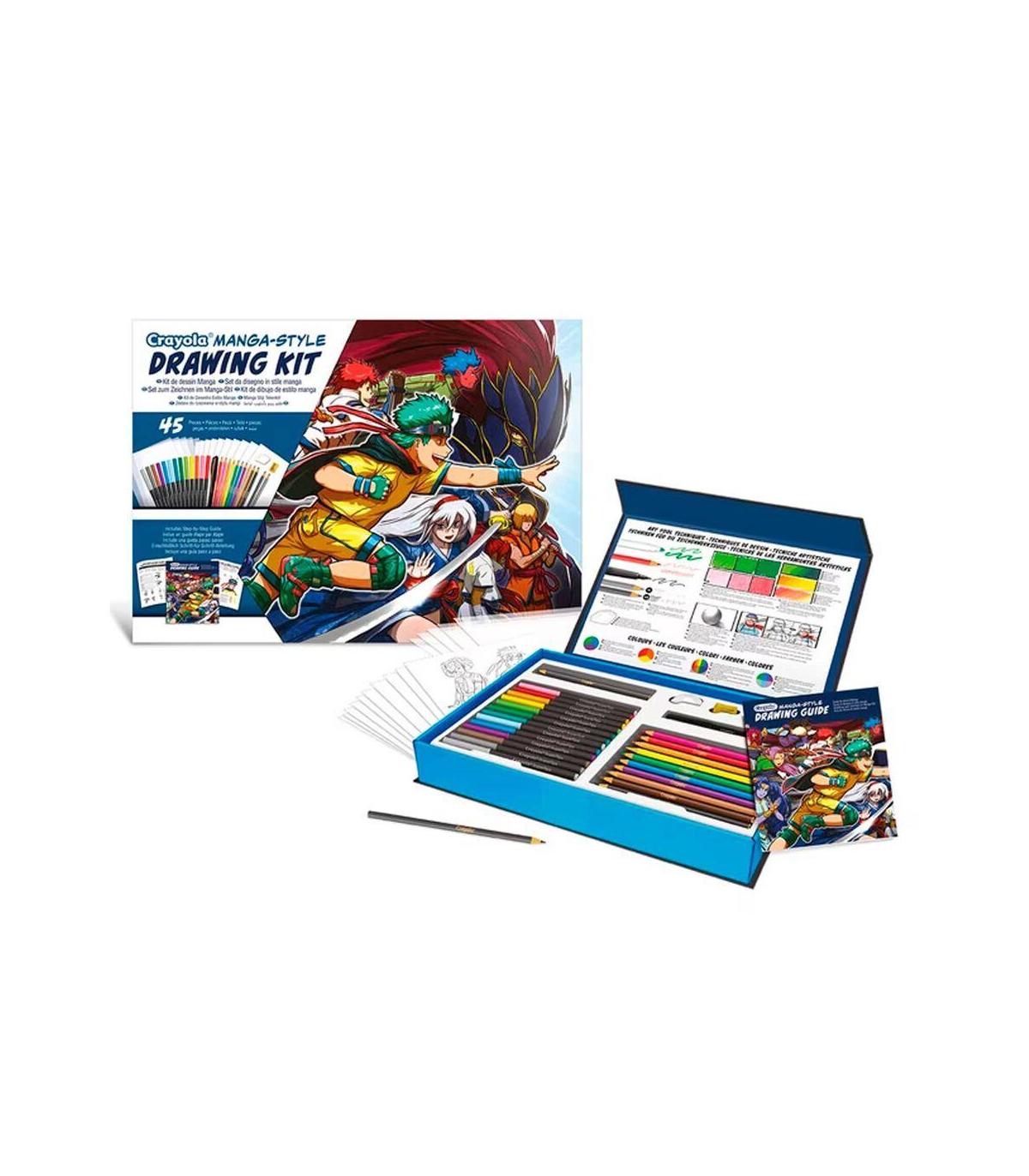 Un abundante conjunto que incluye todo lo necesario para aprender los principios del arte Manga: dibujar, colorear y difuminar sus proprios personajes. Incluye una guía paso a paso muy útil, Ideal para noveles y también para aprender nuevas técnicas de dibujo. Más de 50 pzs para ampliar tu conocimiento artistico. ¡ideal para aficionados del genero Anime y Manga o para quien da sus primeros pasos en el arte! Contenido: 10 lápices de colores, 13 rotuladores supertips lavables, 2 lápices de boceto, 1 rotulador negro punta delgada, sacapuntas y borrador Guía paso-a-paso para aprender a dibujar (32 páginas), 10 hojas para dibujar, 5 hojas para calcar