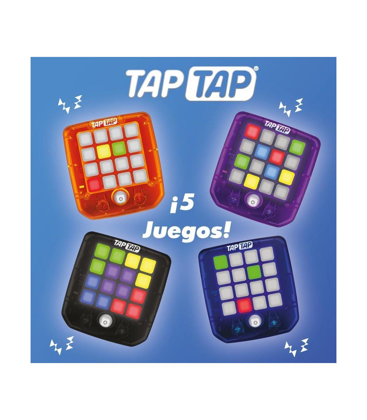Tap Tap TapTap es un divertido juguete electrónico táctil, que cabe en la palma de la mano, y donde se fusionan el juego y el aprendizaje a través de 5 mini juegos de tecnología moderna Incluye 5 juegos: Stop and Go, Raindrops, Eat Greens, Match It y Copy That Optimo para entrenar la memoria, la concentración, la coordinación ojo-mano, el pensamiento crítico y la motricidad fina de niños y mayores TapTap es el juguete optimo para llevar a cualquier parte: salas de espera, viajes, restaurantes y en modo silencioso Disponible en 4 colores: azul, naranja, morado y negro. Nota: El color del producto se enviará de forma aleatoria.