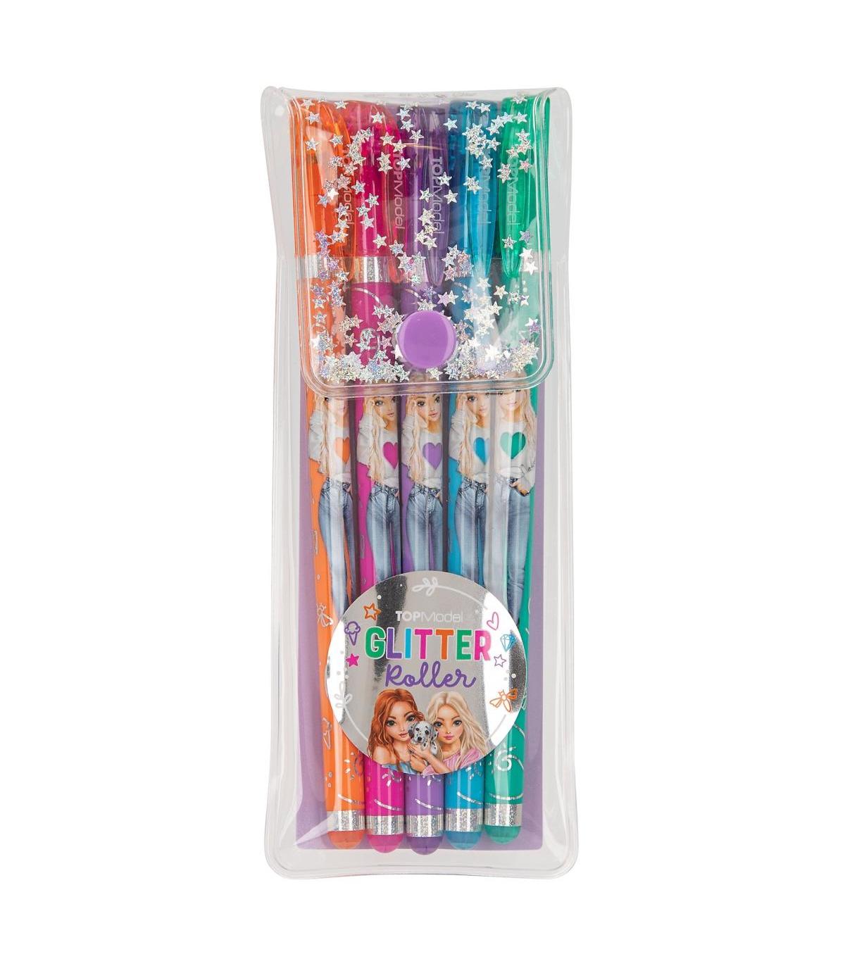 Para divertirse a lo grande escribiendo y dibujando con los rotuladores de purpurina de TOPModel en naranja, rosa, lila, azul y verde. Presentados en un estuche transparente con confeti efecto holograma en la solapa. Las minas no son recambiables.