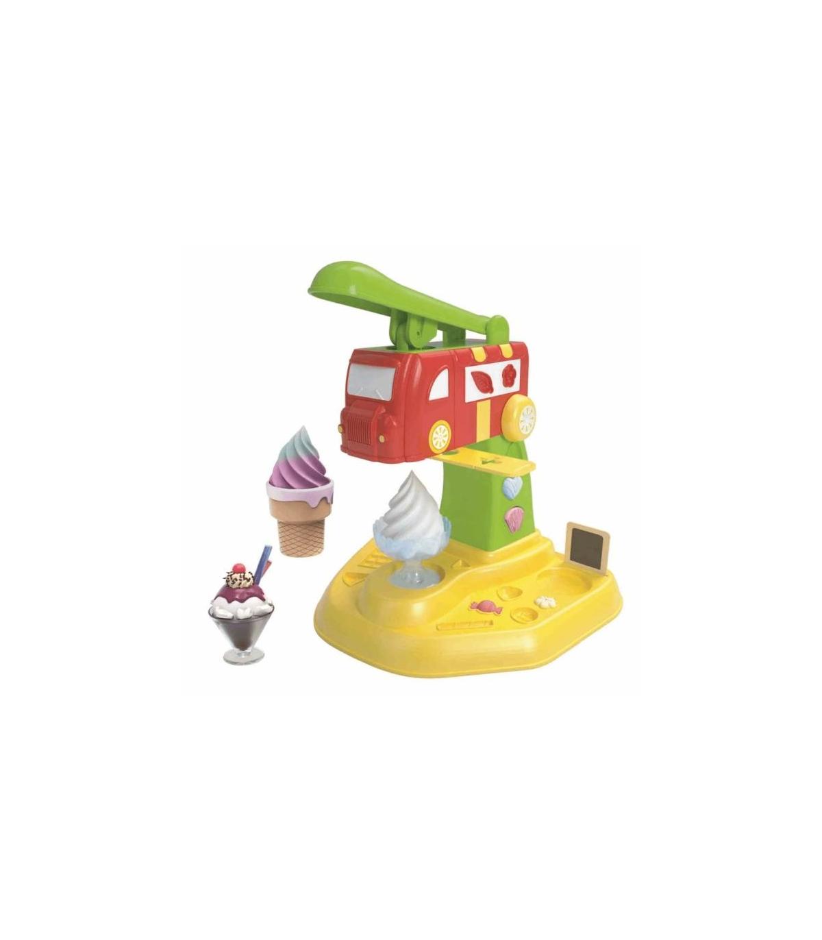 Máquina de Helados con Accesorios Completo: Incluye una divertida máquina para crear helados de plastilina, con moldes de conos, copas y cubetas, además de herramientas para añadir toppings y decorar cada creación.