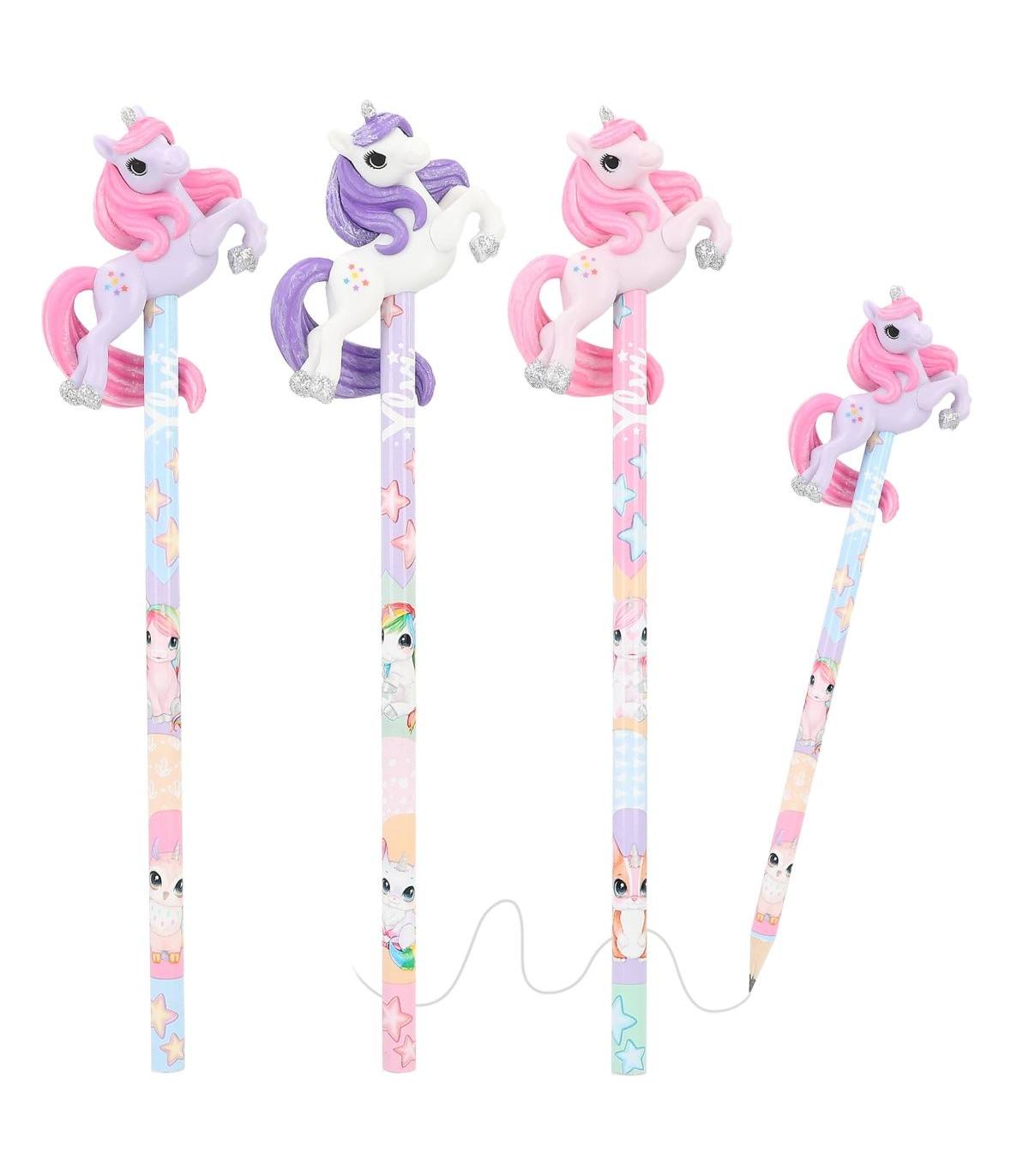 Lapiz con Figurita 3D Ylvi Este preciosidad de lápiz (Ø7 mm) con topper de un unicornio pintado a mano está en tres diseños de alegres colores y adornado con seres del mundo de la fantasía. De Ylvi.