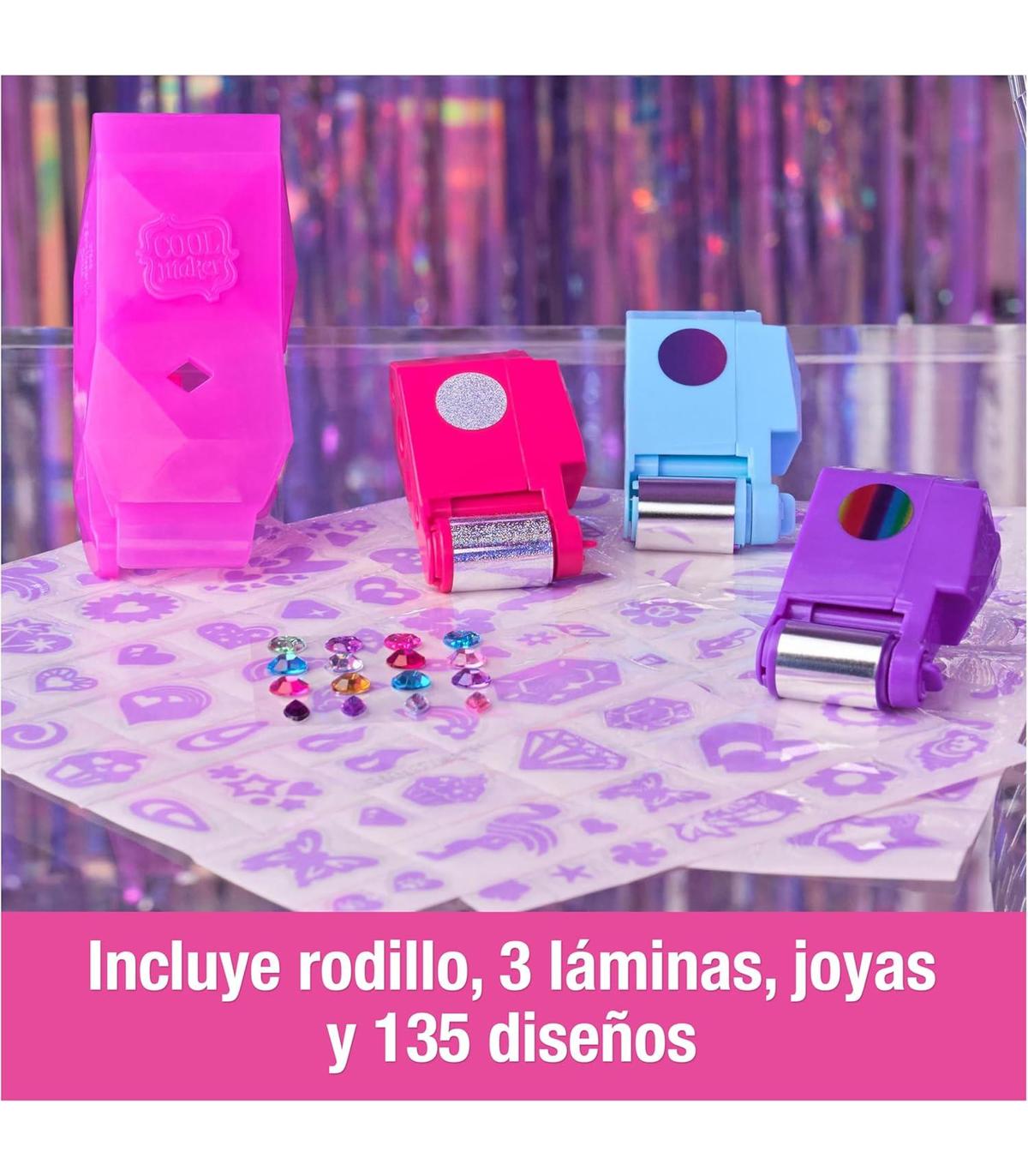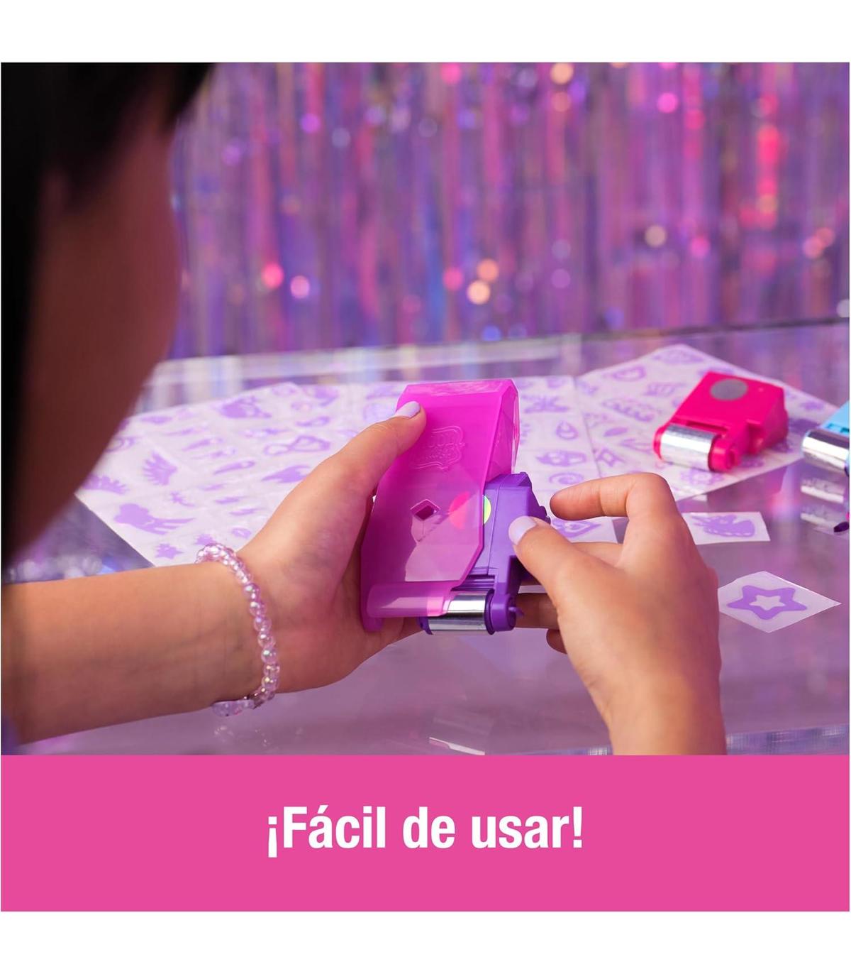 CREA INCREÍBLES TATUAJES TEMPORALES: Incluye todo lo necesario para que las niñas diseñen su propio tatuaje temporal ya que contiene 135 diseños, 3 estilos de películas, gemas para decorar y un rodillo fácil de usar