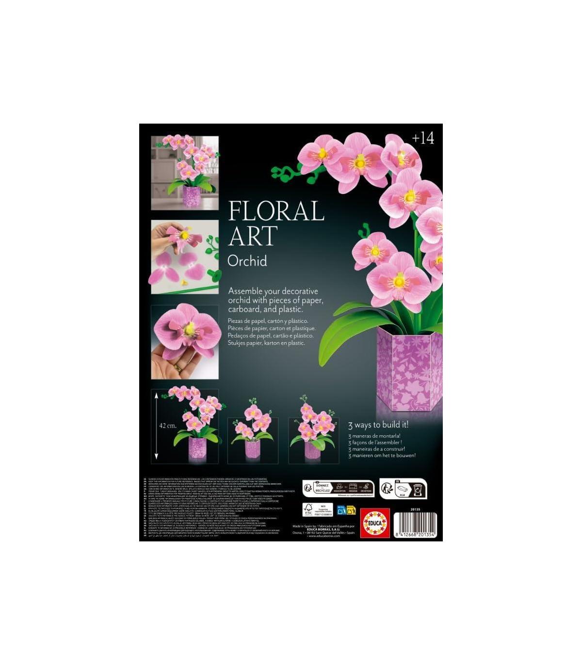 Orquidea Arte Floral La caja incluye todos los elementos necesarios para crear tu orquídea de nuestra nueva serie Floral Art. Kit de manualidad para realizar una orquídea en papel sin necesidad de pegamento, ni tijeras. Un set perfecto para regalar, una vez realizado resulta muy decorativo. Con materiales sostenibles, papel y cartón. Contenido: - Cartón troquelado, hojas de papel pretoqueladas impresas a dos caras, tubo de plástico cortado a diferentes medidas, parrilla de plástico de color verde, parrilla plástico color amarillo. Cada flor tiene hojas decorativas de altura y posición regulable de los tallos, estos se pueden girar, subir y bajar a lo largo del tallo. La planta se puede montar con diferentes estructuras según se vayan colocando los conectores. Recomendado a partir de 14 años.