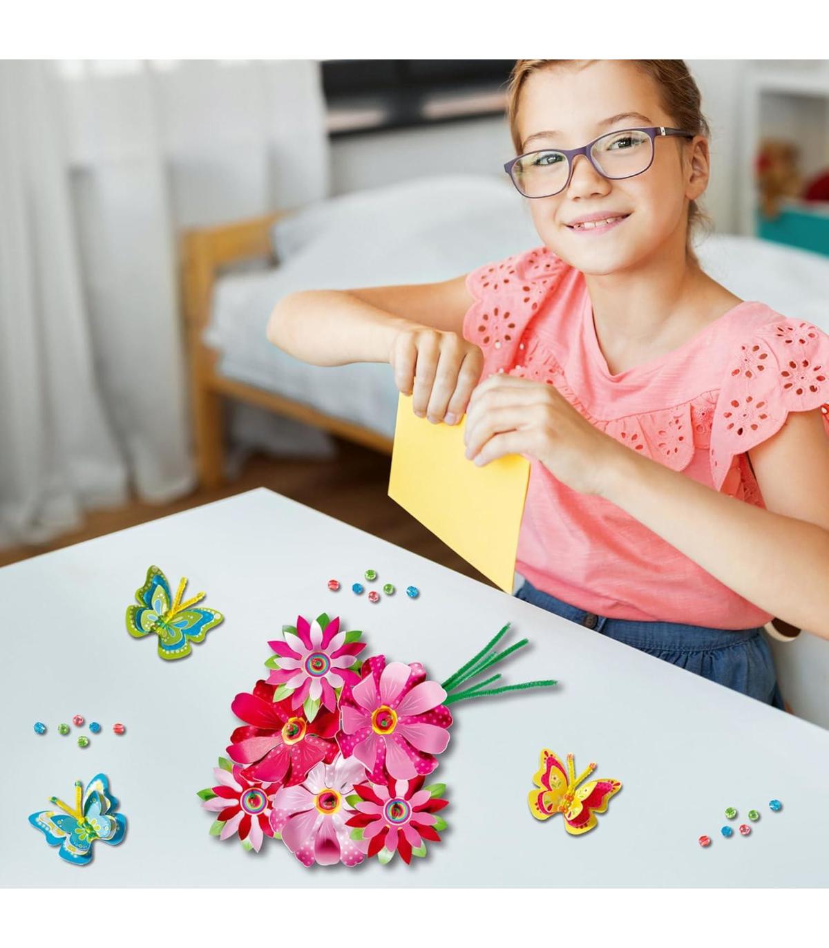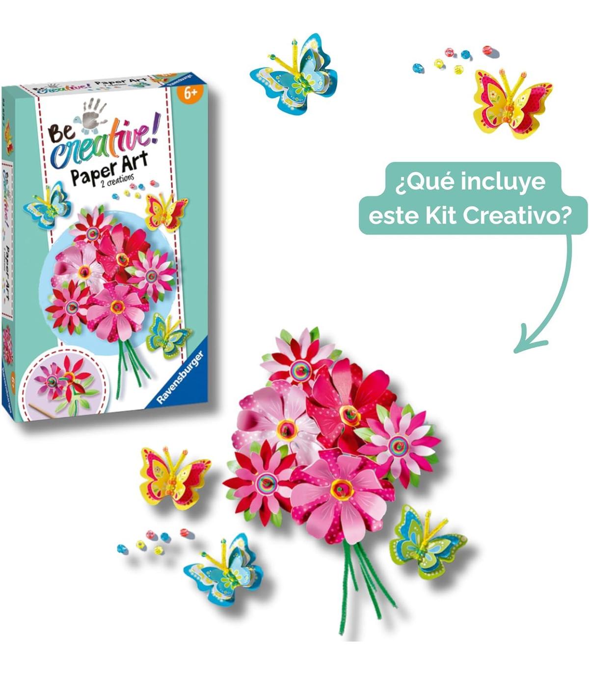 Arte En Papel: Flores Y Mariposas Con el juego BeCreative Paper Art Flowers & Butterflies de Ravensburger los niños a partir de 6 años hacen coloridas flores y mariposas mágicas Simplemente combine las piezas de cartón preperforadas y las perlas a voluntad y fíjelas con los limpiapipas Ya sea como decoración o para regalar: las flores y mariposas de Ravensburger son sin duda un punto de atracción El principio simple es especialmente adecuado para niños que desean familiarizarse con la costura. Por lo tanto, es el regalo ideal para niños a partir de 6 años y es adecuado como regalo de Pascua, regalo de cumpleaños o simplemente entre El kit de manualidades contiene 30 piezas de estampado para flores y mariposas, cuentas de colores, 1 palo de madera, limpiapipas e instrucciones detalladas (idioma español no garantizado)