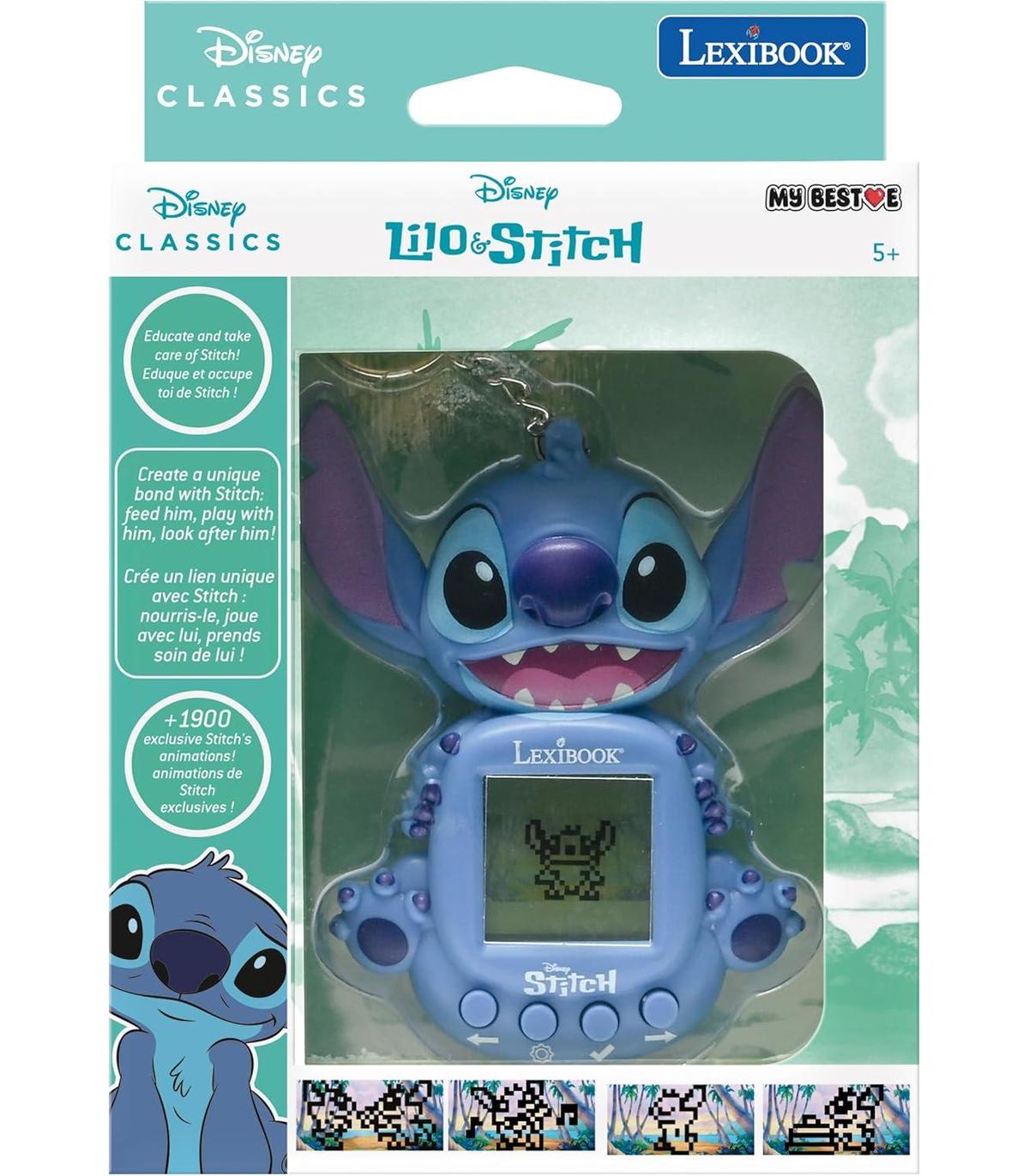 CONSOLA STITCH - ¡Tu compañero Disney favorito te está esperando! Cuida de Stitch dándole de comer, jugando con él y velando por su bienestar para una experiencia educativa y lúdica sin fin. Gracias a su llavero integrado, podrás llevártelo a todas partes.