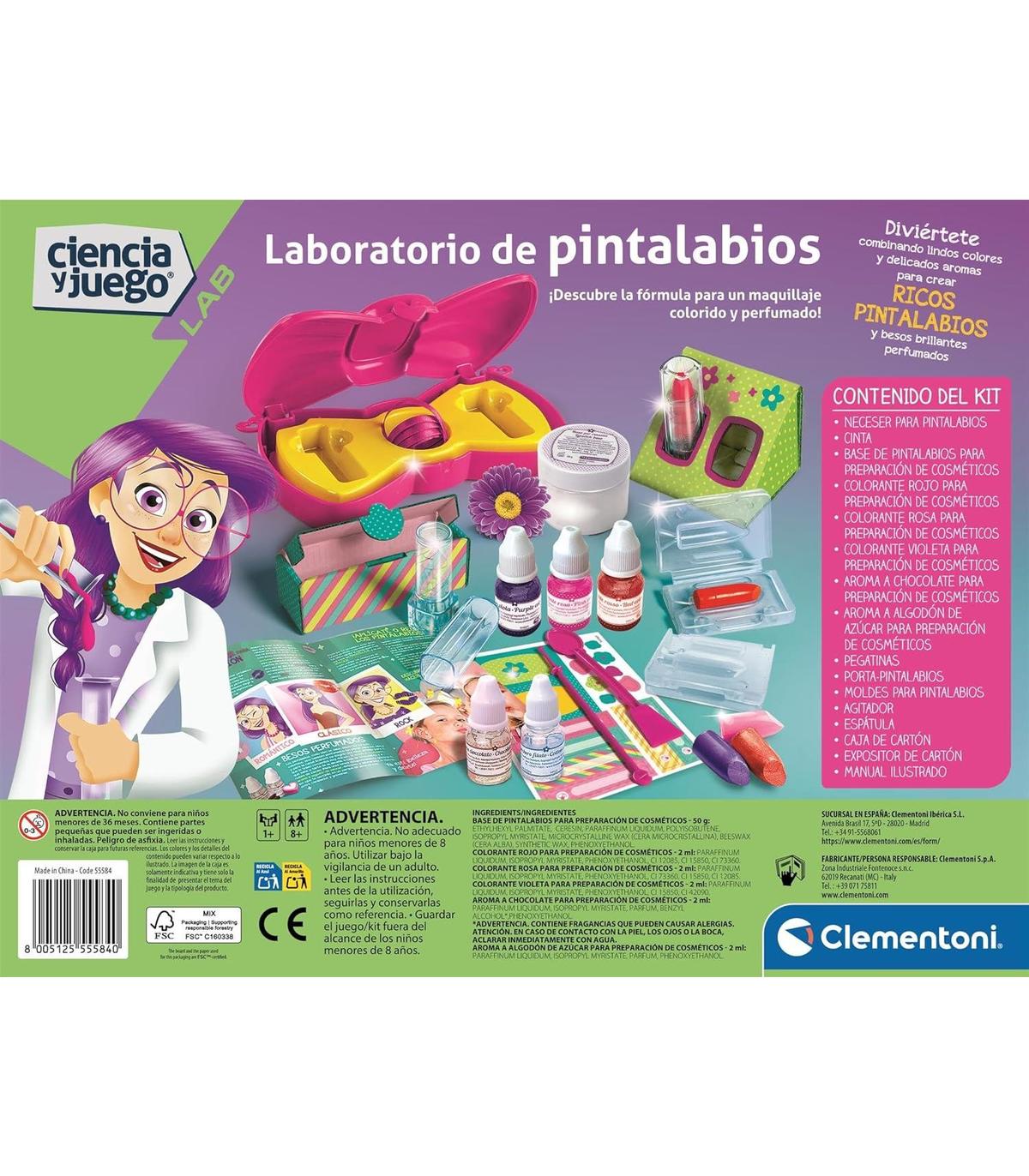 ¡Un completo kit científico para crear increíbles pintalabios y descubrir que la ciencia tiene mil colores! ¡Contiene todo lo necesario y el material científico para hacer pintalabios de forma fácil y divertida! El completo manual ilustrado guiará a los niños por cada fase de realización haciéndoles descubrir los secretos de la cosmética También se incluye un bolso especial a la moda para llevar las creaciones cosméticas siempre consigo Ideal para niños a partir de 8 años