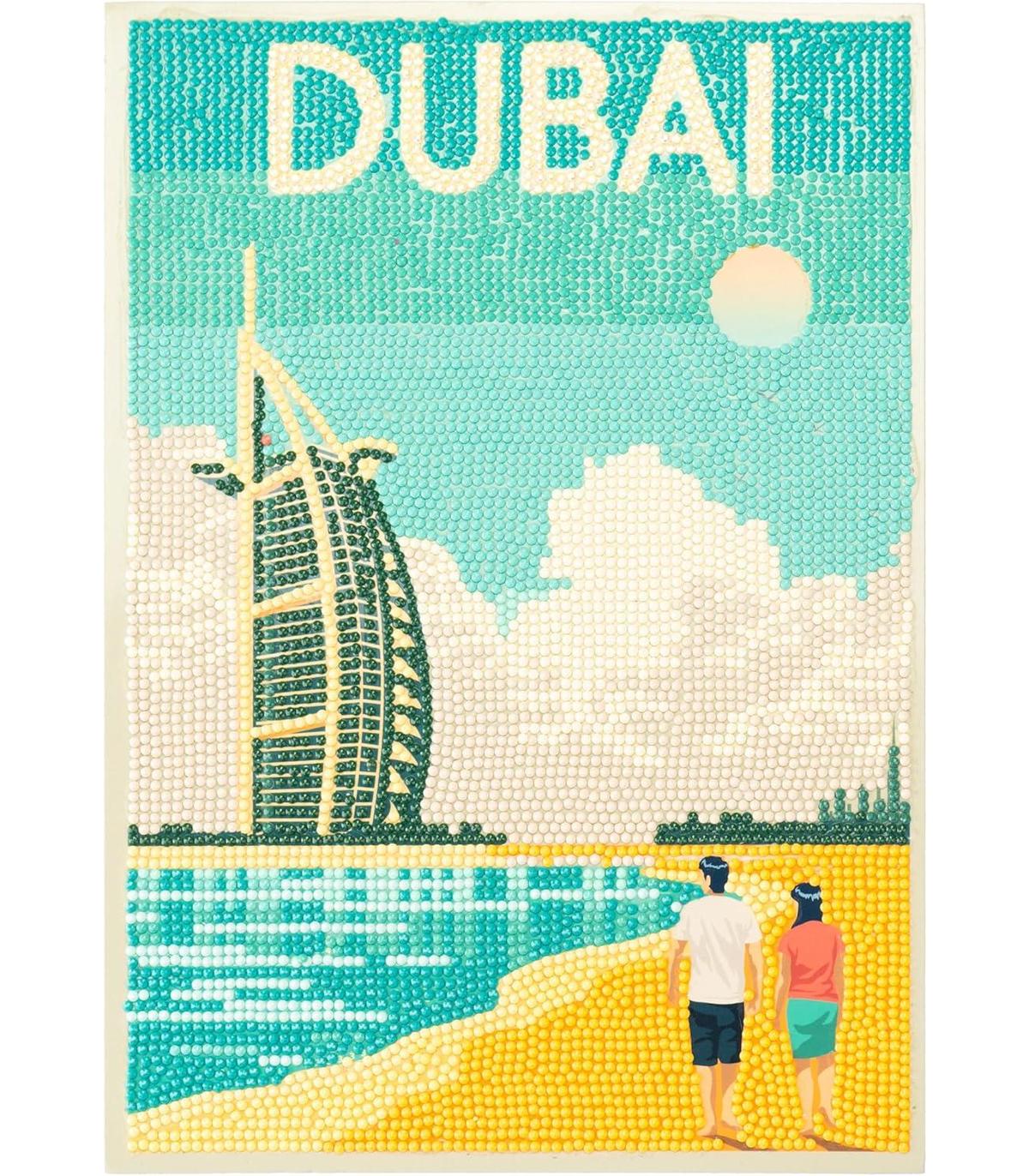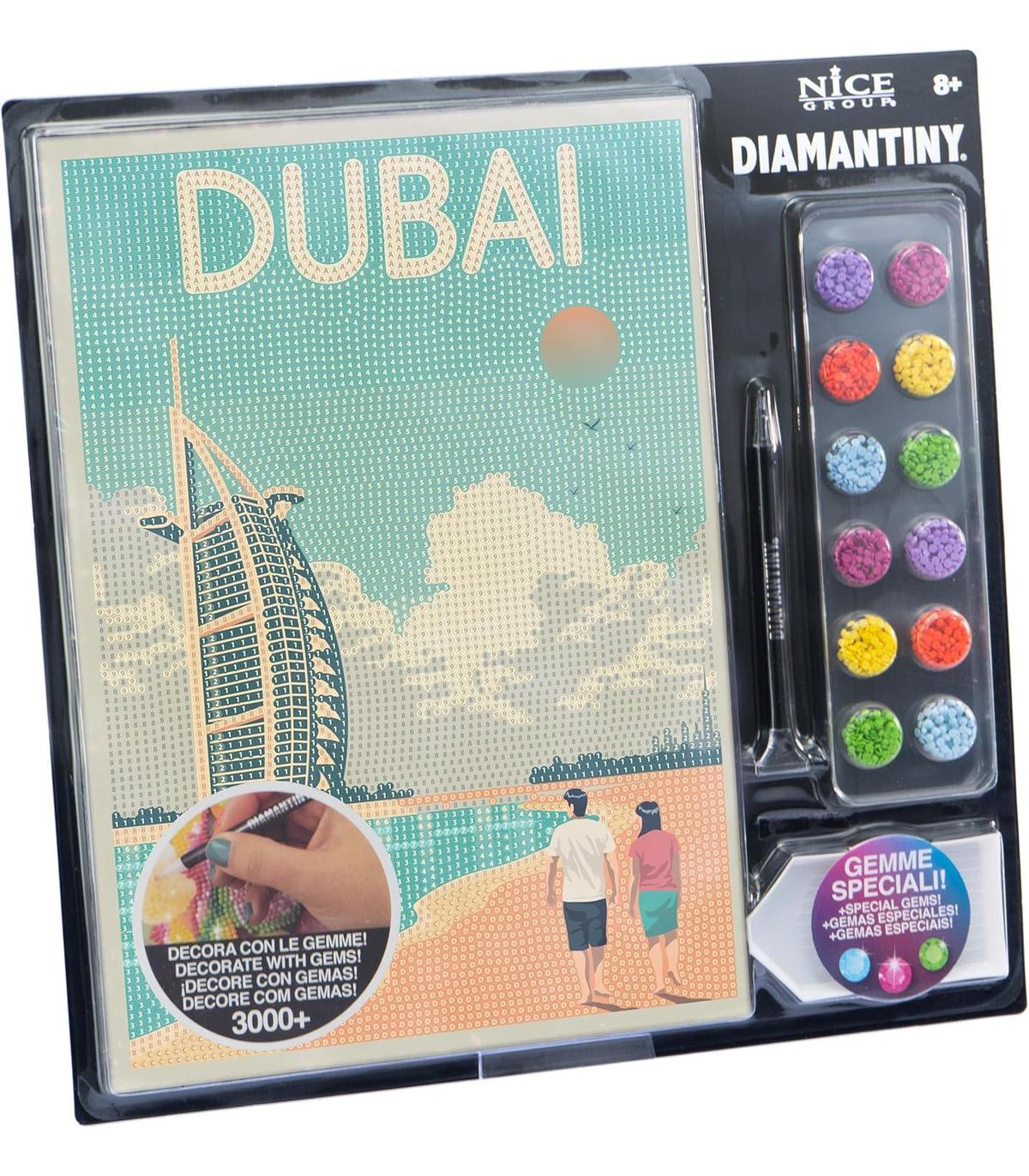 DIAMANTINY Level Up: es la actividad Crystal Art para crear mosaicos DIY, en relieve, con coloridas gemas 3D. Disponible en la versión POSTCARD Dubai para gemmar.
