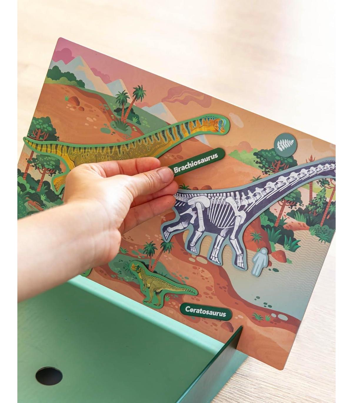 JUEGO MAGNÉTICO infantil óptimo para los amantes de los dinosaurios. Aprende sobre su evolución y desaparición, tamaños, alimentación y la formación de fósiles.