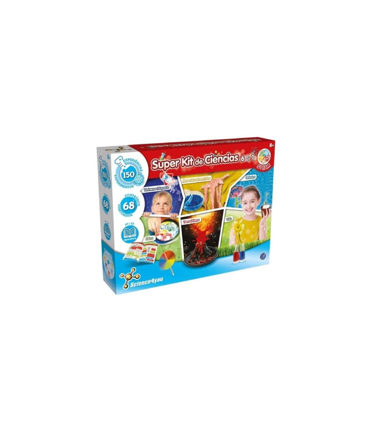 Edad recomendada : + 8 años . - 150 experimentos , 67 contenidos , sobre el universo/espacio , los materiales , física, la Tierra, la vida. - Descubre como : recoger huellas dactilares y hacer espectaculares explosiones químicas , simular erupciones volcánicas y la formación de la atmósfera terrestre, hacer brillantes cristales , y muchos más experimentos.