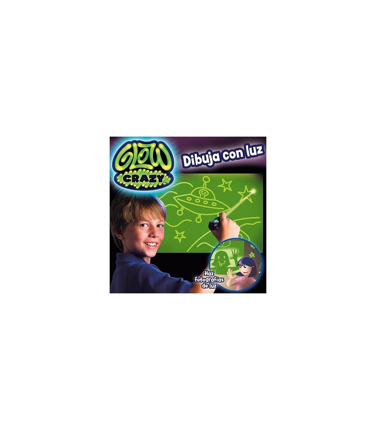 GLOW CRAZY . ¡Con Glow Crazy, pinta con luz o haz siluetas luminosas! ¡Dibujar nunca fue tan divertido! Con el boli de luz y las plantillas, puedes dibujar lo que quieras y con el modo 2 puedes realizar auténticos juegos de sombras, en la gran superficie de dibujo de esta pizarra. También es posible sacar fotos de todo, crear auténticas fotos de luz y no es necesario borrar los dibujos luminosos porque desaparecen solos. ¡La creatividad no tiene límites!