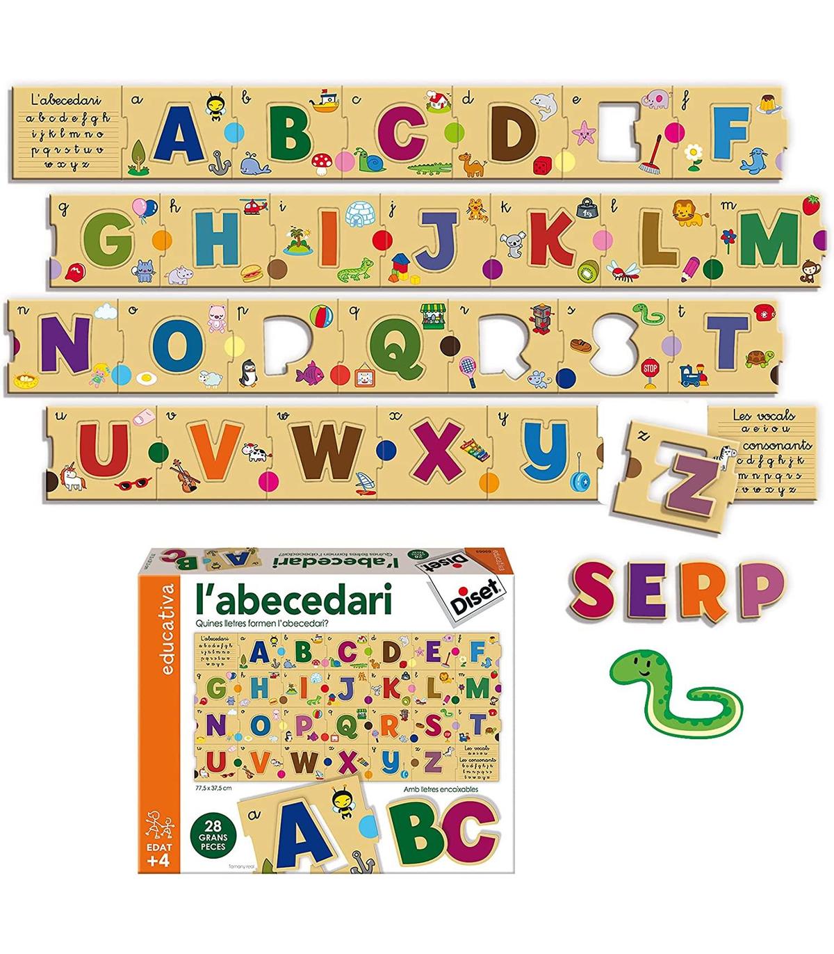 El juego consiste a formar un puzle alargado donde aparece el abecedario catalán completo de la “A” a la “Z”