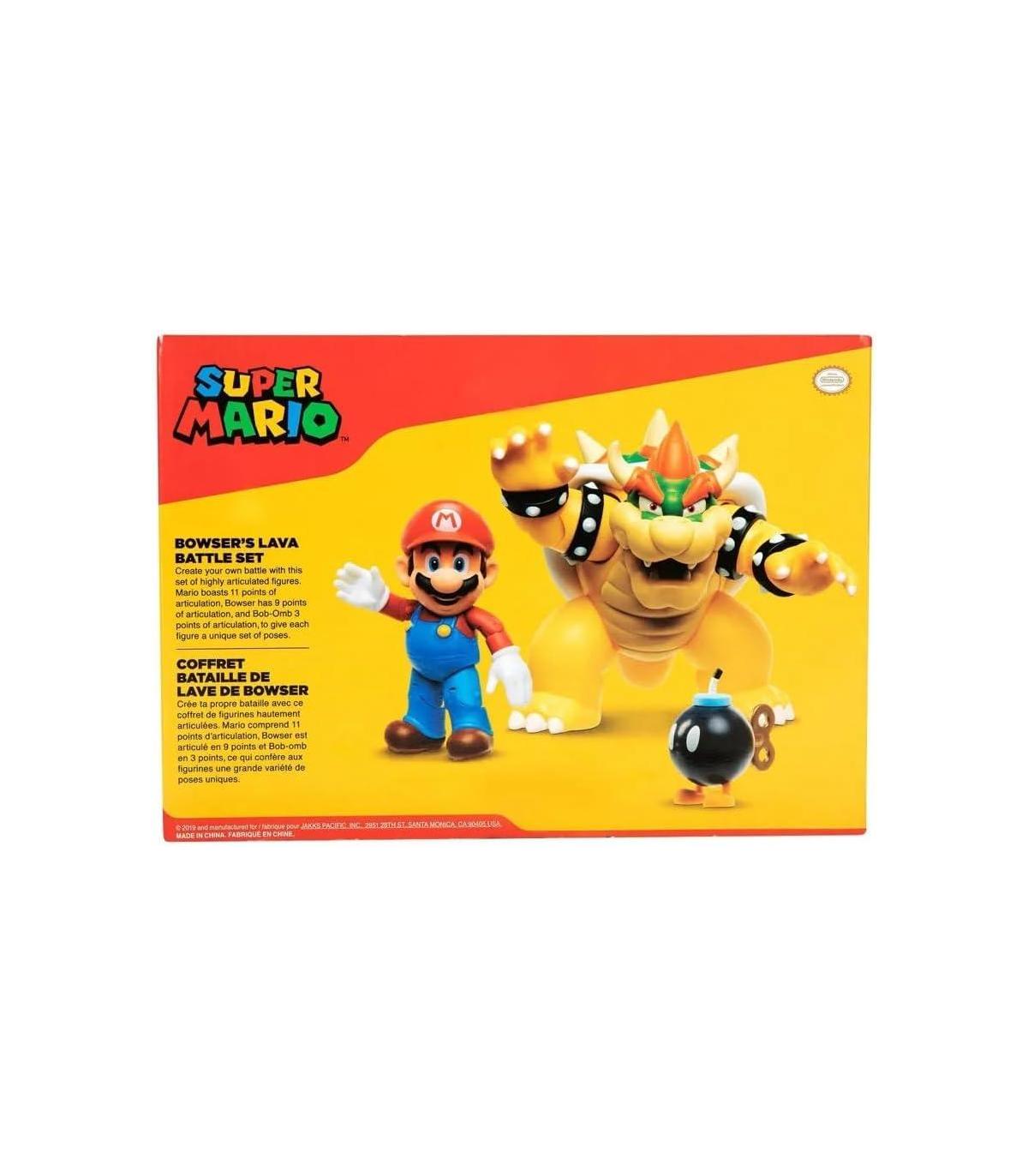 Set Nintendo Diorama Bowser Vs Mario Vive increíbles aventuras con el set diorama de mario y browser de nintendo Recrea la escena de la batalla de mario y browser en los adentros del castillo de lava de browser Mario lucha por salvar a la princesa peach, que ha sido secuestrada El set incluye: 1 figura de mario, 1 figura de browser y 1 fijura de bob-om Figura de mario articulada en 11 puntos Figura de browser articulada en 9 puntos Figura de bob-omarticulada en 3 puntos