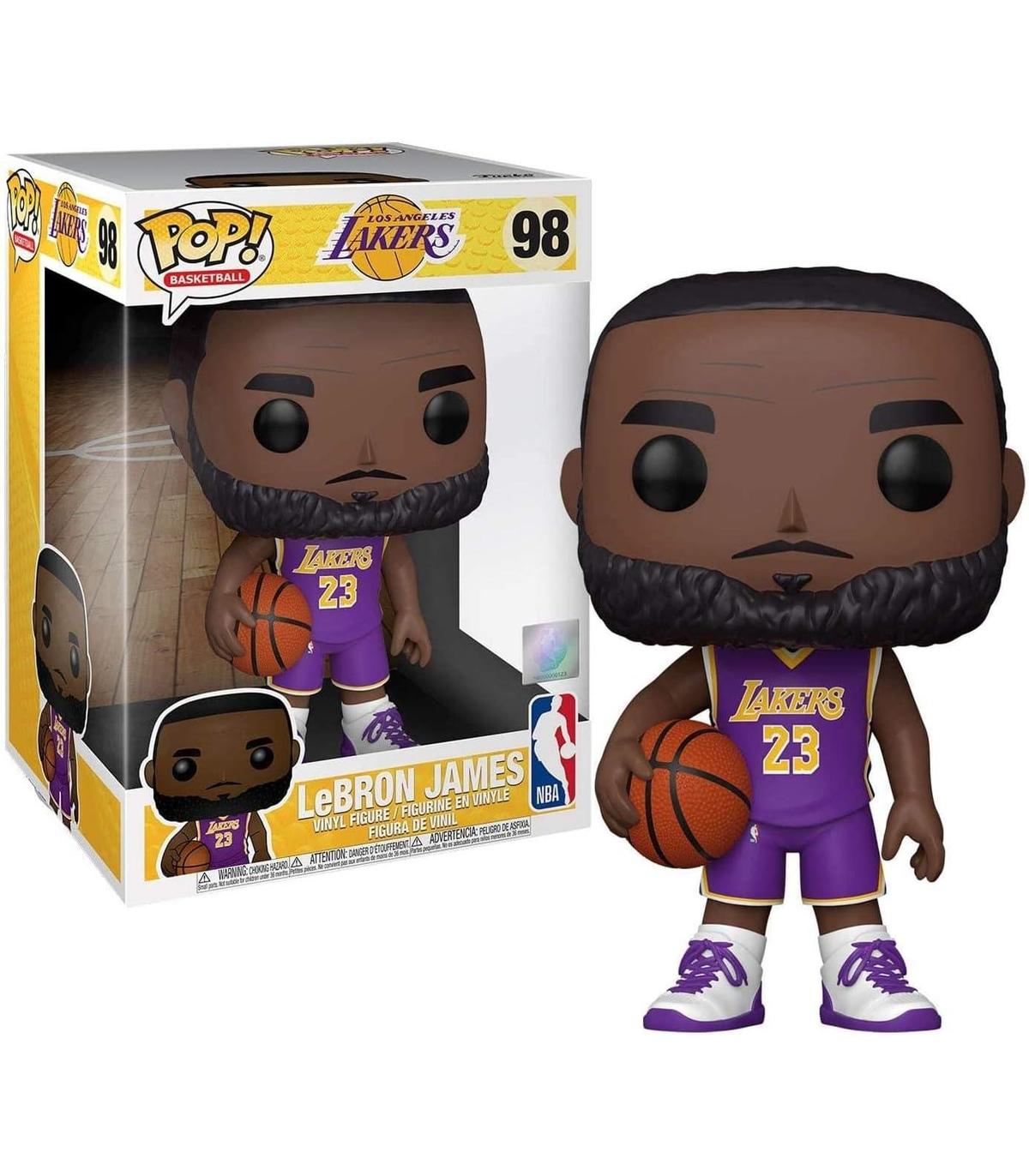 De la colección NBA, te presentamos la figura Funko POP! de LeBron James. La figura mide 25 cm y se envía en una caja ilustrada con ventana para que sea una ideal de regalo súper original para los fans de NBA ¡Descúbre otras figuras de la colección NBA y colecciónalas todas! Fabricado en vinilo. Las figuras Funko Pop son auténticas obras de arte para los Fans y coleccionistas. ¿Podrás quedarte solo con una figura?. No recomendable para menores de 3 años, ya que contiene piezas pequeñas que podrían provocar asfixia en caso de ser ingeridas por el niño/a.