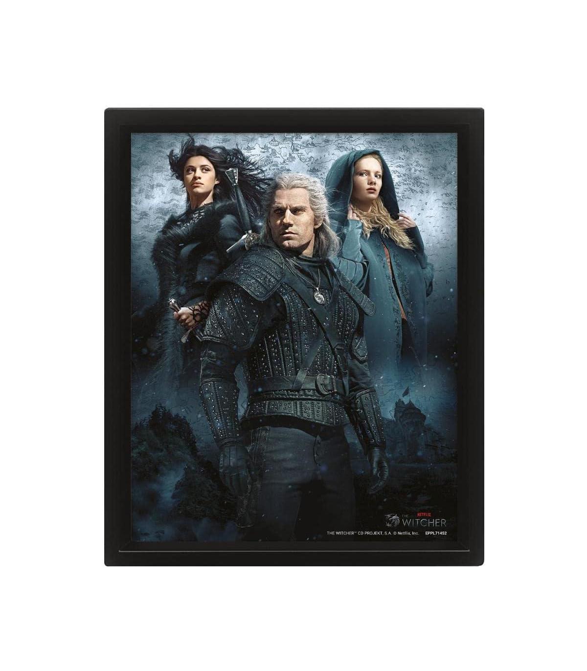 Pyramid International Cuadro EFFET 3D The Witcher – Yenfer de Vengerberg, Geralt de Riv y Ciri – Medida 23,5 x 28,5 cm – Listo para colgar, con licencia oficial