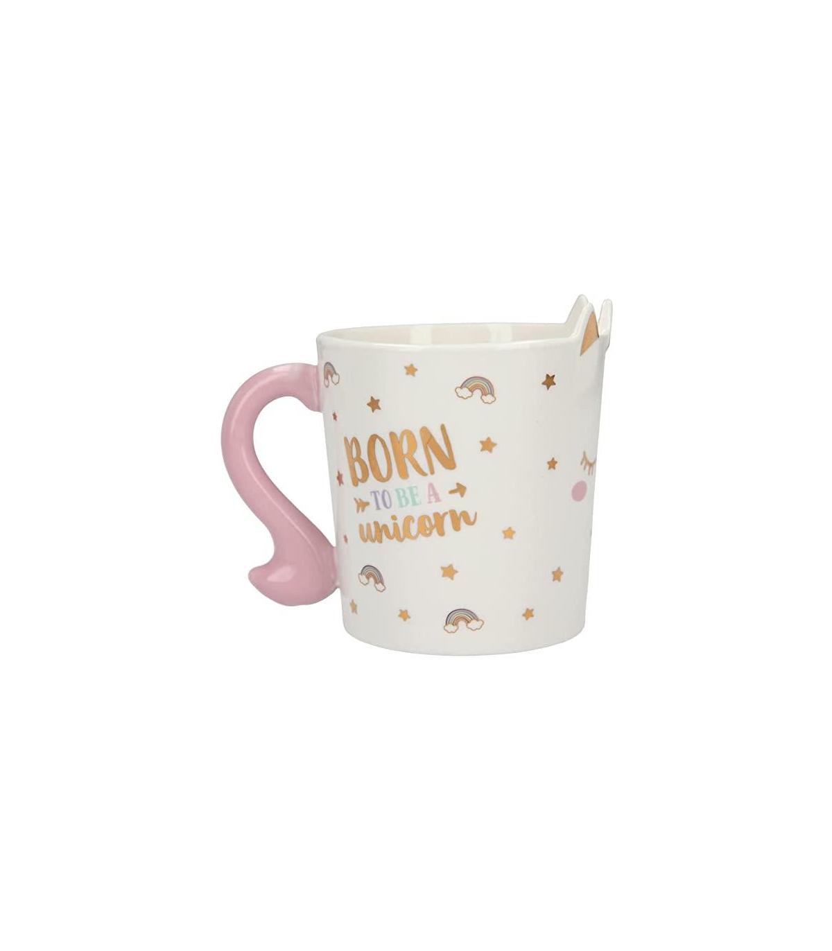 Taza con asa, lindas orejas de unicornio y cuerno y precioso acabado en oro