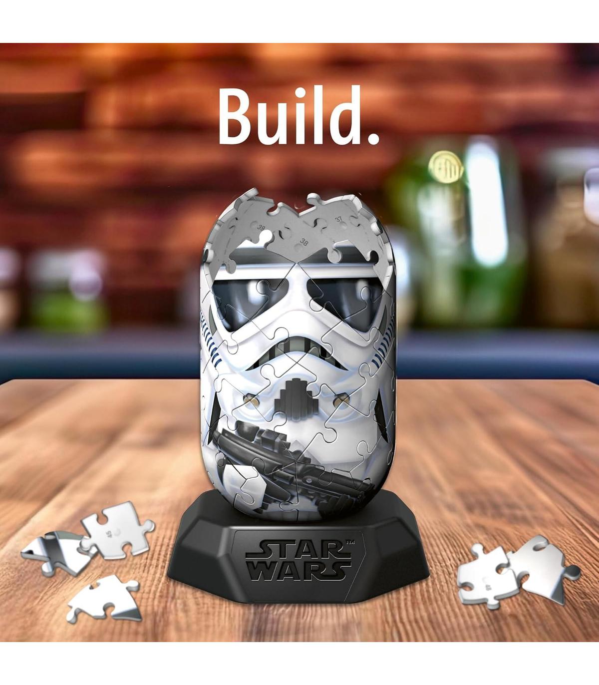 Contenido: 1 tarjeta de colección, 54 piezas numeradas en la parte posterior del rompecabezas de plástico tridimensional, base de plástico, instrucciones rápidas. Dimensiones del producto montado incluyendo soporte (alto x ancho x profundidad): aprox. 12,5 cm x 7,7 cm x 8 cm. Diámetro de la cápsula: aprox. 6 cm.