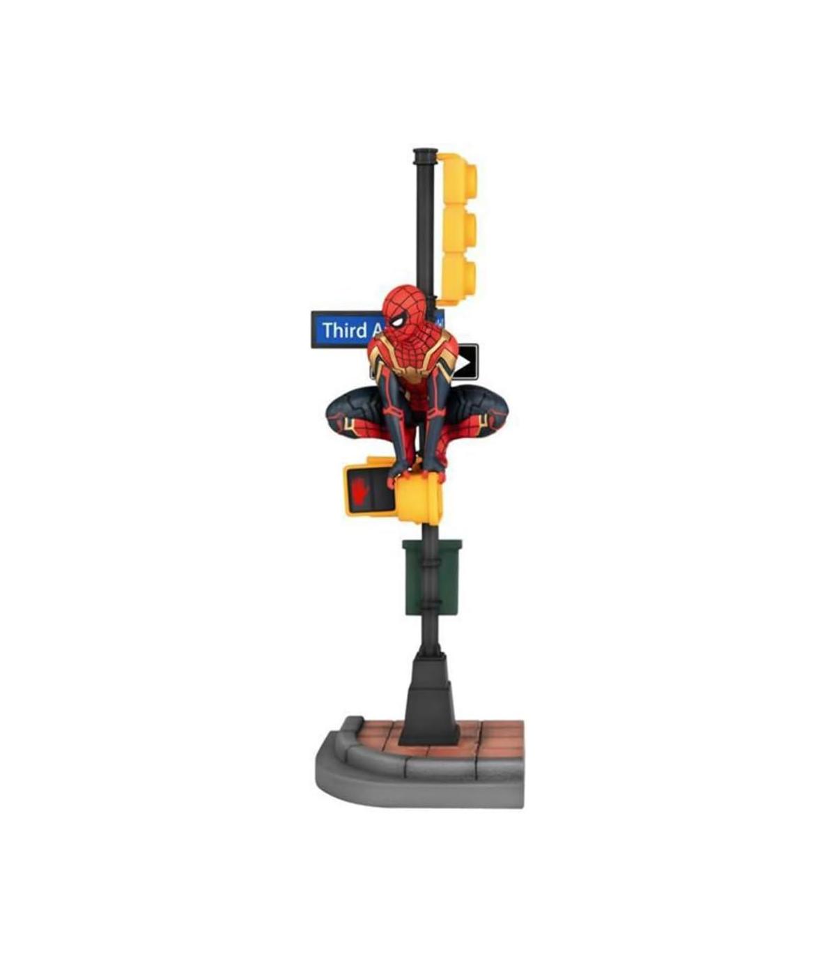 Basado en la película Spider-Man: No Way Home, Peter Parker está listo para enfrentarse al multiverso. Se ve a Spider-Man encaramado en un semáforo de Nueva York observando su entorno. Esta detallada estatua mide aproximadamente 6 pulgadas de alto.