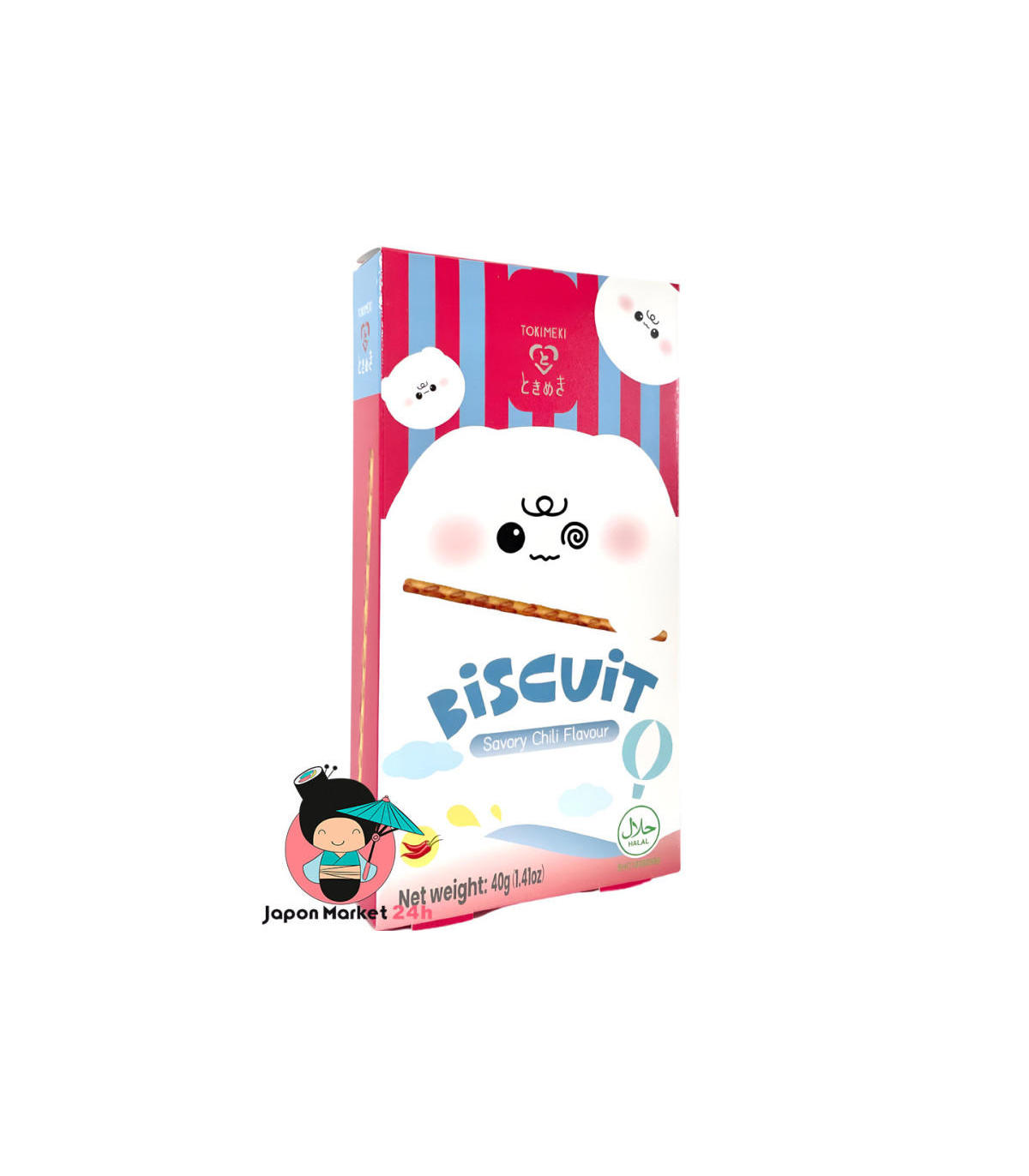 En esta ocasión tenemos los Biscuit, unos riquísimos y crujientes palitos con un sabor a chili. Es ideal para llevártelo a cualquier sitio, querrás comer un bocado tras otro.