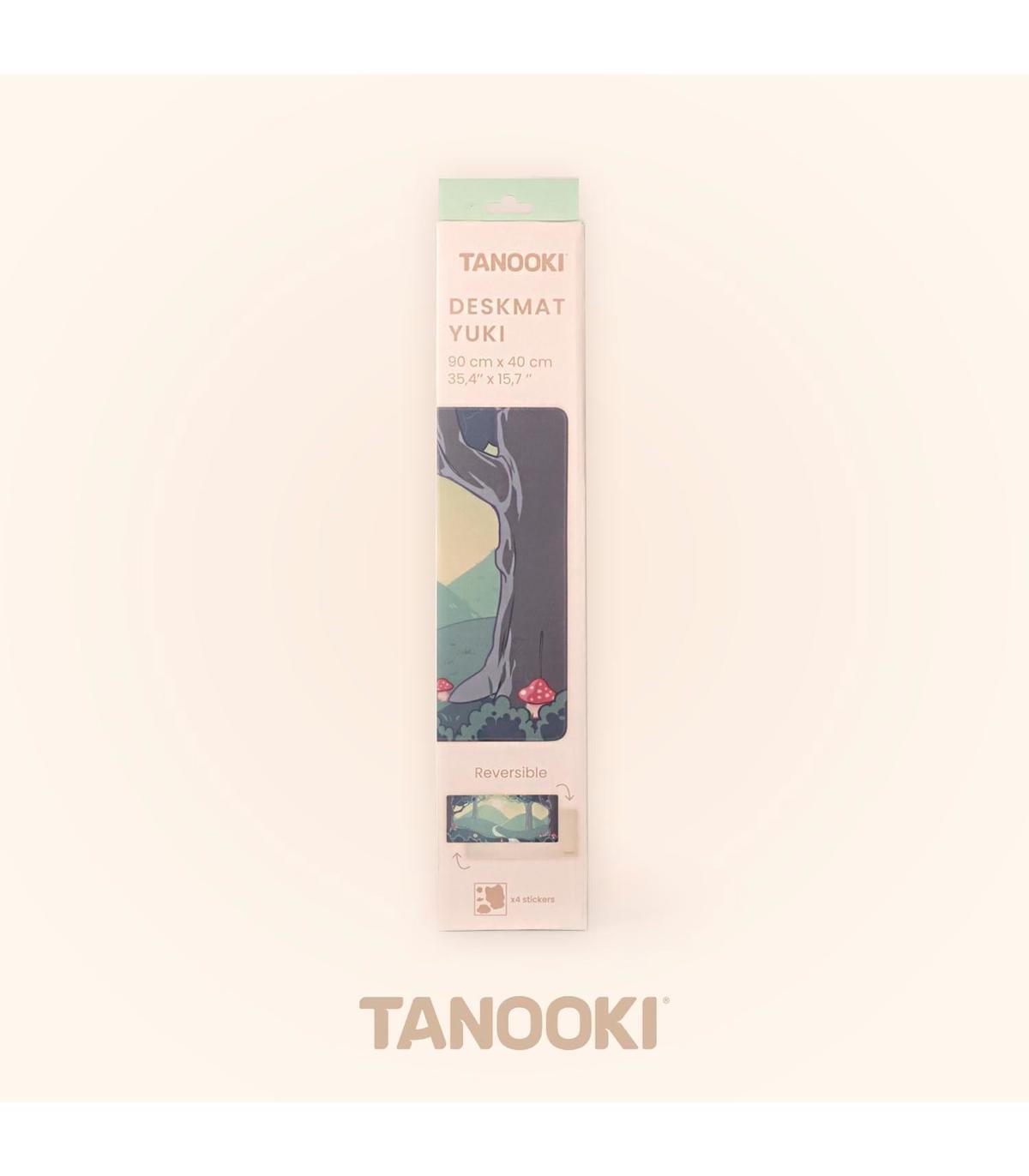 Diseño 2 en 1: Alfombrilla reversible con diseño minimalista color beige por un lado y dibujo único del bosque donde vive Yuki realizado por una ilustradora local