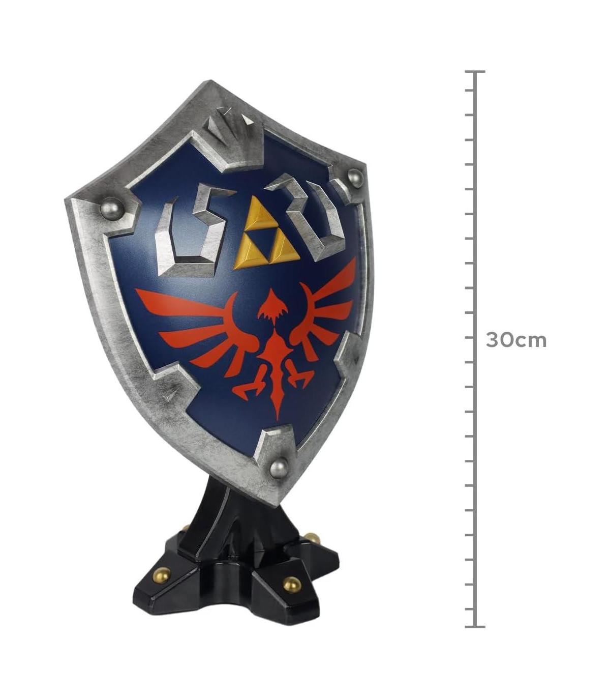 El héroe de Hyrule, Link, tiene toneladas de armas, conjuntos de armaduras y escudos a su disposición cuando explora el vasto reino de Hyrule, pero uno de sus equipos más icónicos en toda la serie The Legend of Zelda ™ es el Escudo Hylian. . El frente azul con bordes plateados, el símbolo de la Trifuerza y ??el escudo de Hyrule son elementos básicos de su diseño clásico, y esta estatua en particular se inspiró en el diseño de The Legend of Zelda ™: Breath of the Wild.