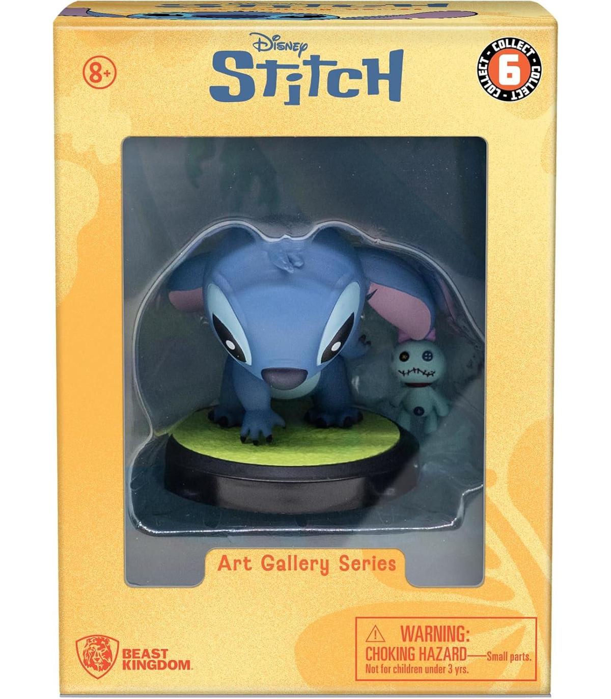 Colecciona los 6 estilos de puntada: recrea escenas divertidas y construye tu propio escuadrón de Stitch coleccionando las 6 figuras de personajes de la serie Art Gallery. Elige entre Stitch Screaming, Thinking o 3 posturas diferentes de Stitch with Scrump