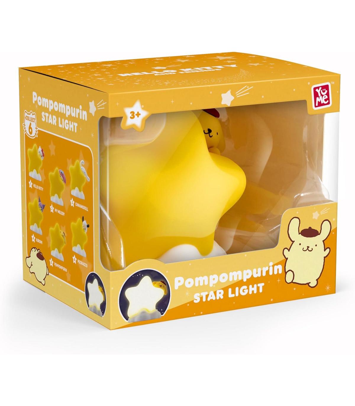 Hello Kitty And Friends Yume Bedside Pompompurin Trae un poco de diversión y magia a tu espacio con la luz de estrella Pompompurin, con el bonito personaje de perro que se asoma desde detrás de una estrella dorada brillante; una adición acogedora a cualquier dormitorio o guardería Esta luz nocturna LED de 9 cm ofrece un brillo suave y cálido que es suave para los ojos y óptimo para la hora de acostarse; funciona con tecnología LED de bajo consumo, asegurando una iluminación duradera Ideal para los fans de Pompompurin, esta luz añade un toque caprichoso a cualquier habitación, creando un ambiente calmante y relajante; es imprescindible para coleccionistas y niños por igual Seguro y duradero para niños a partir de 3 años, la luz de estrella Pompompurin es una encantadora luz nocturna que mejora cualquier habitación con su suave brillo y bonito diseño Empaquetado en una caja de regalo, la luz de estrella Pompompurin es un regalo maravilloso y encantador para cualquier fan de Pompompurin o Sanrio