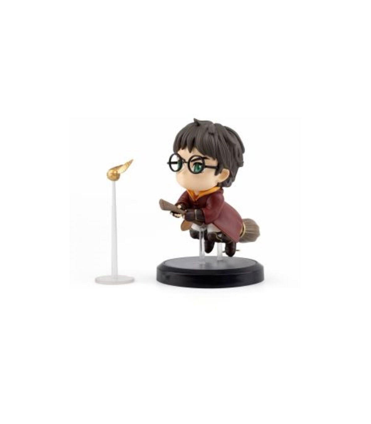 Sumérgete en el mágico mundo de Harry Potter con esta detallada figura de colección. Mide 10 cm y muestra a nuestro héroe volando con su escoba Nimbus, listo para atrapar la Snitch Dorada. La figura destaca por sus icónicas gafas redondas y su uniforme de Quidditch color burdeos, perfectamente recreado.
