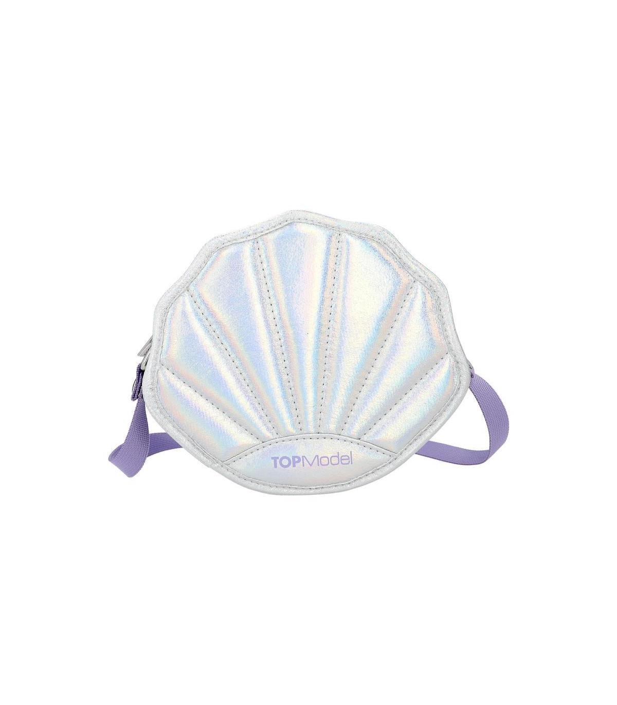 La bandolera lila de este bolsito de TOPModel con forma de concha de maravilloso color plata tornasolado se puede regular en dos posiciones. Es importante destacar que la bandolera lleva un botón de seguridad para evitar ahogamiento que se abre si se produce un tirón brusco y fuerte. El bolso cierra con cremallera. Material: PU 100 por 100; interior y bandolera: poliéster 100 por 100.