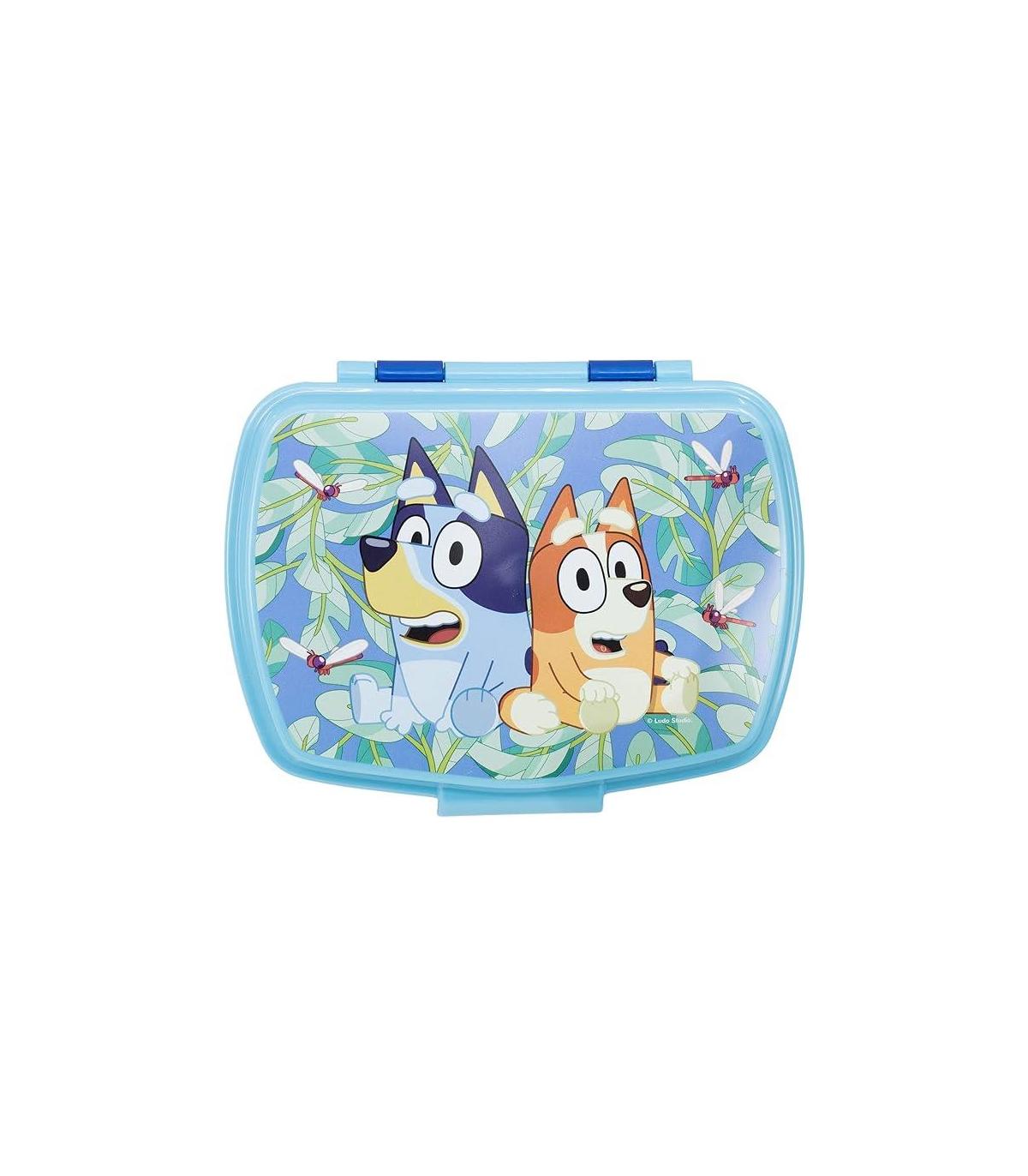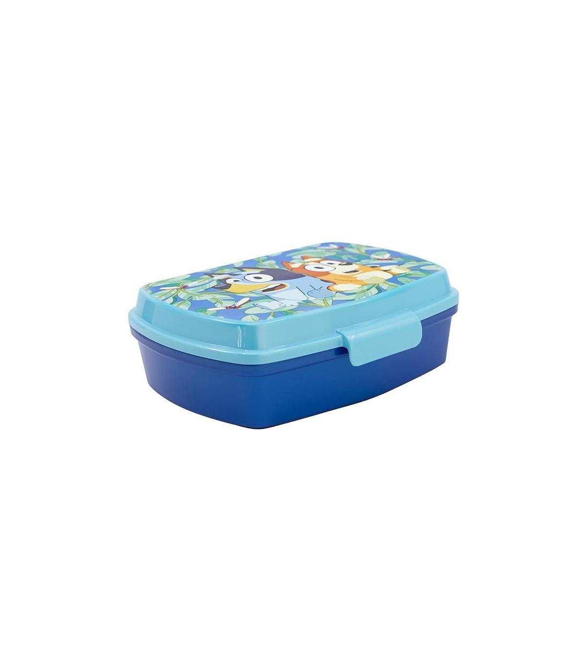 Fiambrera rectangular para el almuerzo infantil de Bluey. Práctica sanduchera con el tamaño necesario para que los niños puedan llevar su merienda al parque, al colegio o en cualquier excursión fuera de casa. Fabricada en material resistente, aguantará las caídas y golpes accidentales del uso diario. Además, está decorada con atractivos diseños basados en los personajes principales de sus series favoritas, lo que hará que los más pequeños estén encantados de llevársela allá donde vayan e incluso la utilicen para guardar y transportar sus pequeños juguetes. Características: Material resistente. Decoración en la tapa. Libre de BPA. Licencias oficiales.