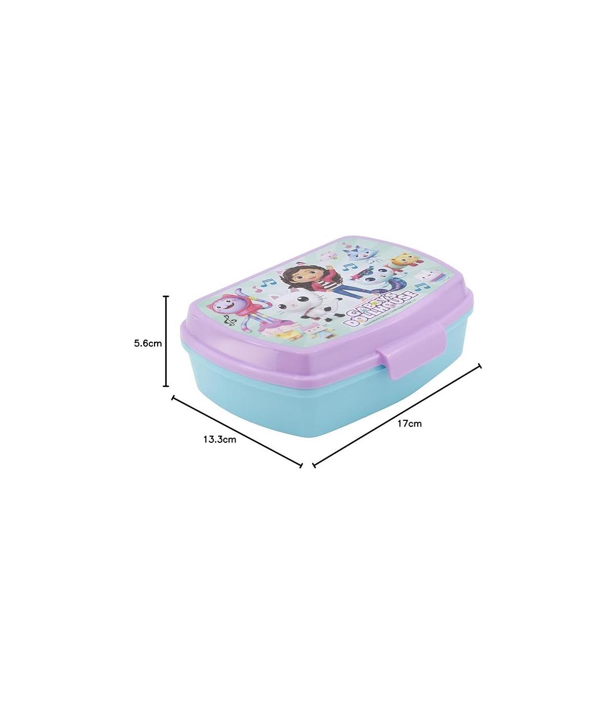 Sandwichera rectangular Gabby's Dollhouse: fiambrera rectangular para el almuerzo infantil de Gabby's Dollhouse. Práctica sandwichera con el tamaño necesario para que los niños puedan llevar su merienda al parque, al colegio o en cualquier excursión fuera de casa. Fabricada en material resistente, aguantará las caídas y golpes accidentales del uso diario y, al estar decorada con atractivos diseños basados en los personajes principales de sus series favoritas, hará que los más pequeños estén encantados de llevársela allá donde vayan y que incluso la utilicen para guardar y transportar sus pequeños juguetes. Material resistente Decoración en tapa Libre de BPA Licencias oficiales.