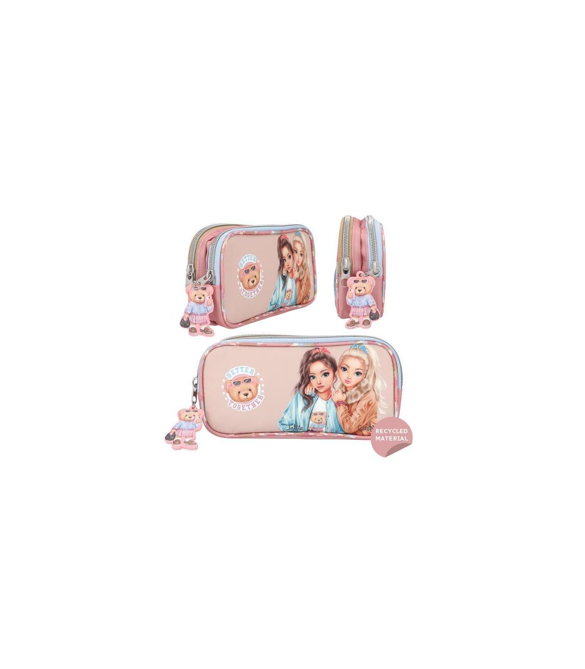 ¡Bienvenida al team Teddy! El espacioso estuche de TOPModel es de color beige empolvado con elementos en rosa y azul. Como chulísimo motivo principal lleva dos modelos y un osito muy mono. Los bordes rematados a cuadritos y las cremalleras de colores distintos hacen que este estuche destaque y llame la atención. Plus monísimo: el colgante de osito. Los dos compartimentos del estuche ofrecen mucho espacio para lápices, rotuladores, etc. Material: poliéster reciclado 100 por 100.