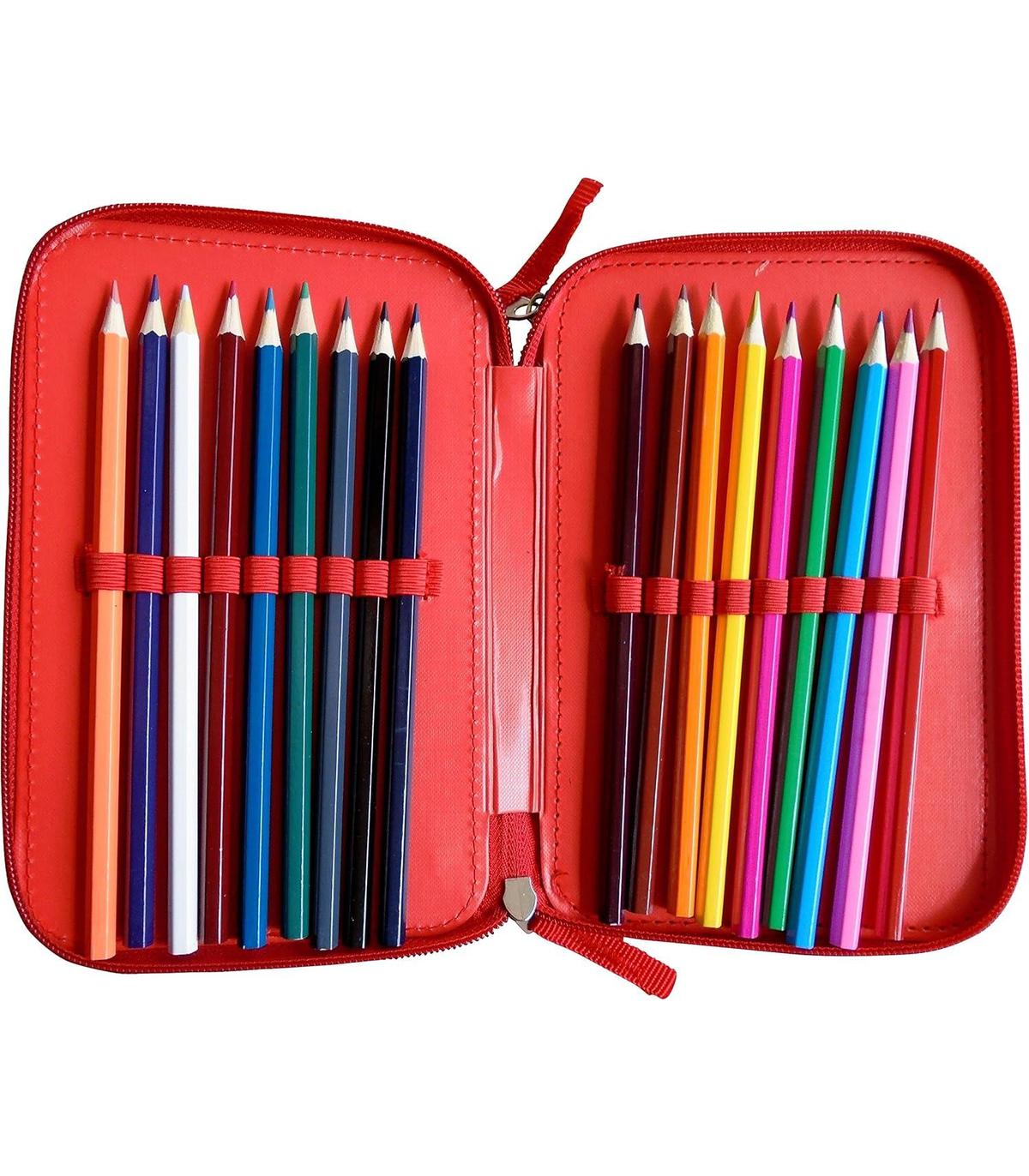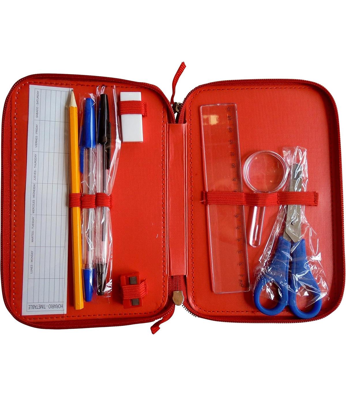 Plumier Triple Mickey Mouse. Estuche con tres compartimentos. Lápices, sacapuntas, tijeras, lupa, calendario, tijeras, regla. Tamaño: 13 cm x 20 cm x 6 cm.