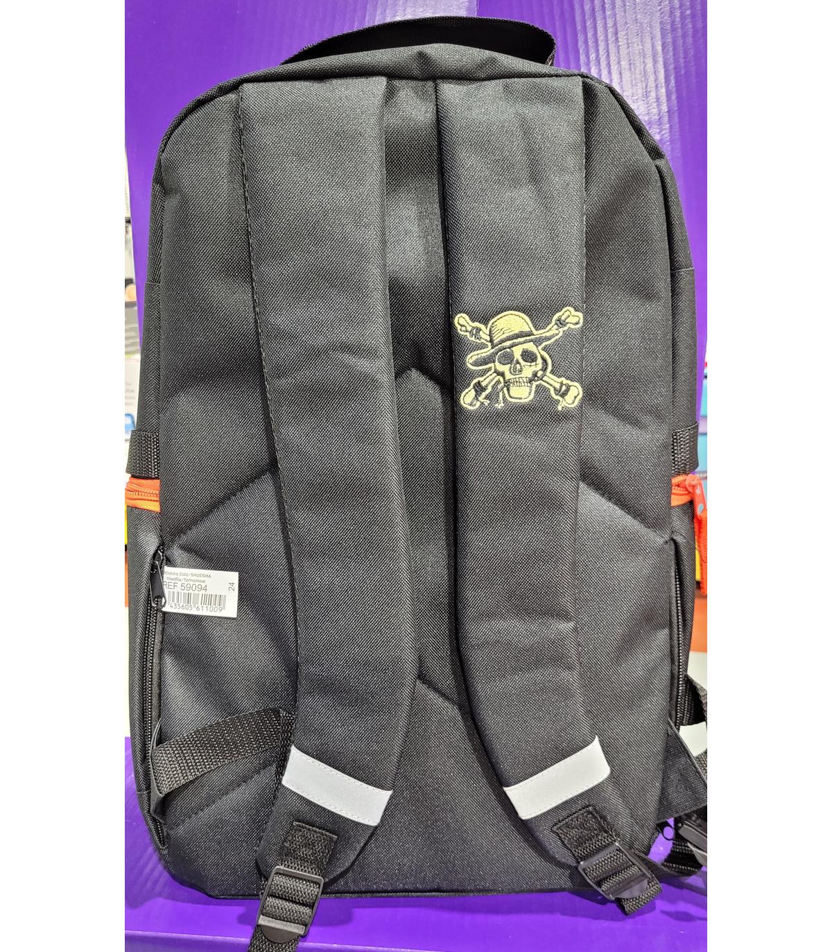 Mochila JR. One Piece Monkey ¡Comienza una eta escolar con el look más inspirador y divertido! ¡Equípate con esta genial Mochila Junior Portaordenador One Piece Monkey de Perona! Hazte con esta sensacional mochila junior de gran tamaño, con la que transportar todo el material necesario par ala vuelta al cole, y hacerlo con el estilo aventurero de tu anime favorito. La mochila ideal para los fans de las aventuras piratas de Luffy y sus amigos, con diferentes espacios protegidos para transportar todo con estilo, comodidad y seguridad para los peques. Nota: La mochila se puede adaptar a un carro Perona compatible (no incluido). Edad recomendada: 6 años o más. Colección: One Piece Monkey. Incluye: 1 mochila junior de color negra con diseño especial de la linea Monkey de One Piece, tirantes acolchados con medida ajustable y diseño transpirable, espalda acolchada, forro interior, cintas reflectantes en los tirantes, asa de mano en la parte superior, espacio de gran capacidad interior con cierre de cremallera, bolsillo interior portaordenador, bolsillo frontal de malla, dos pequeños bolsillos laterales con cierre de cremallera y sistema patentado adaptable a carro oculto. Medidas aproximadas de la mochila: 46 cm de largo, 30 cm de ancho y 16 cm de fondo. Material principal de fabricación de la mochila: Poliéster.