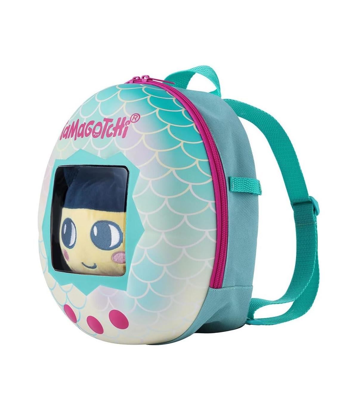Puedes seguir llevándola contigo a todas partes gracias a la mochila Tamagotchi, donde puedes transportar a tu peluche donde quieras; los diseños están basados en las carcasas de tamagotchi más icónicas de la historia