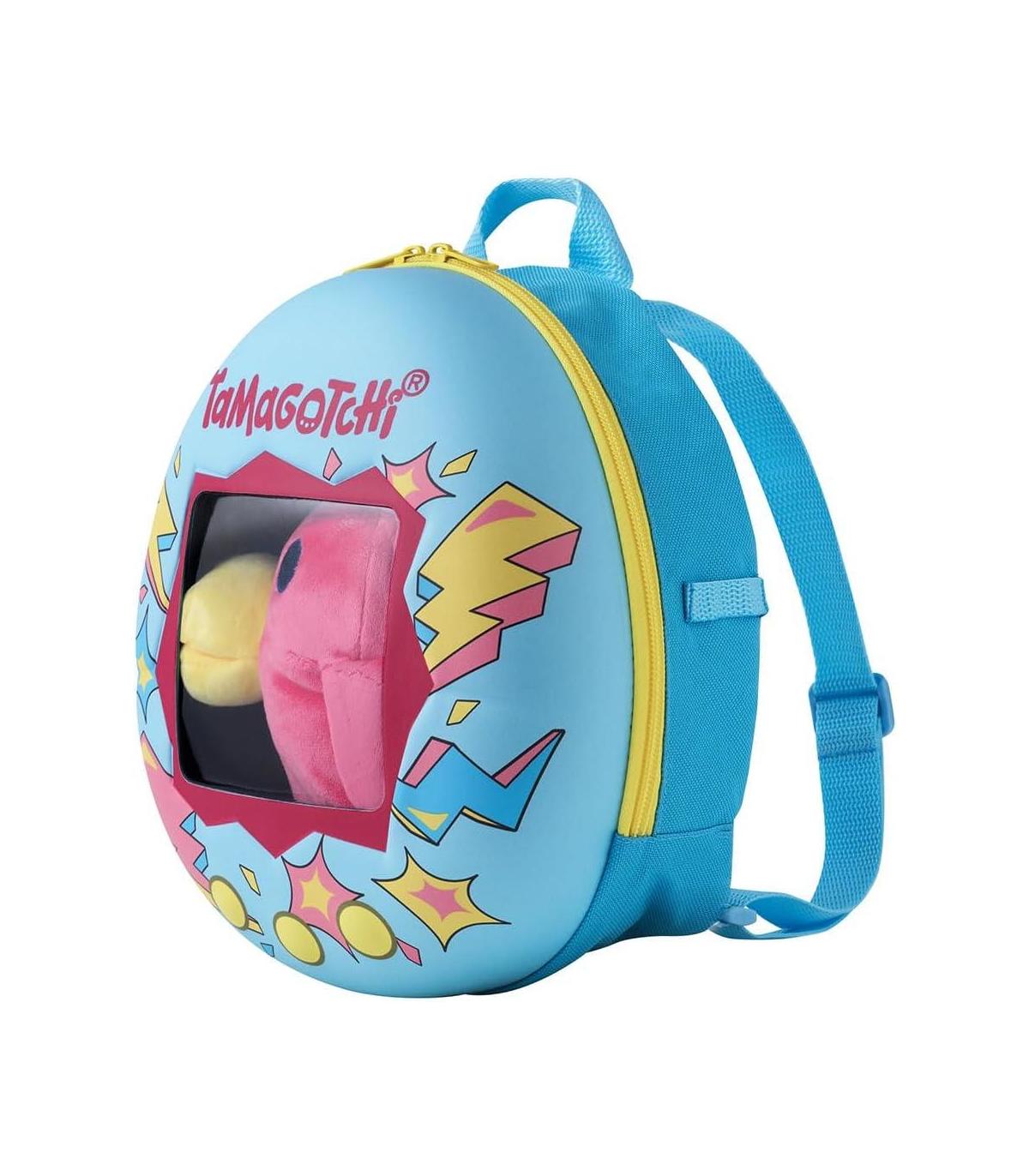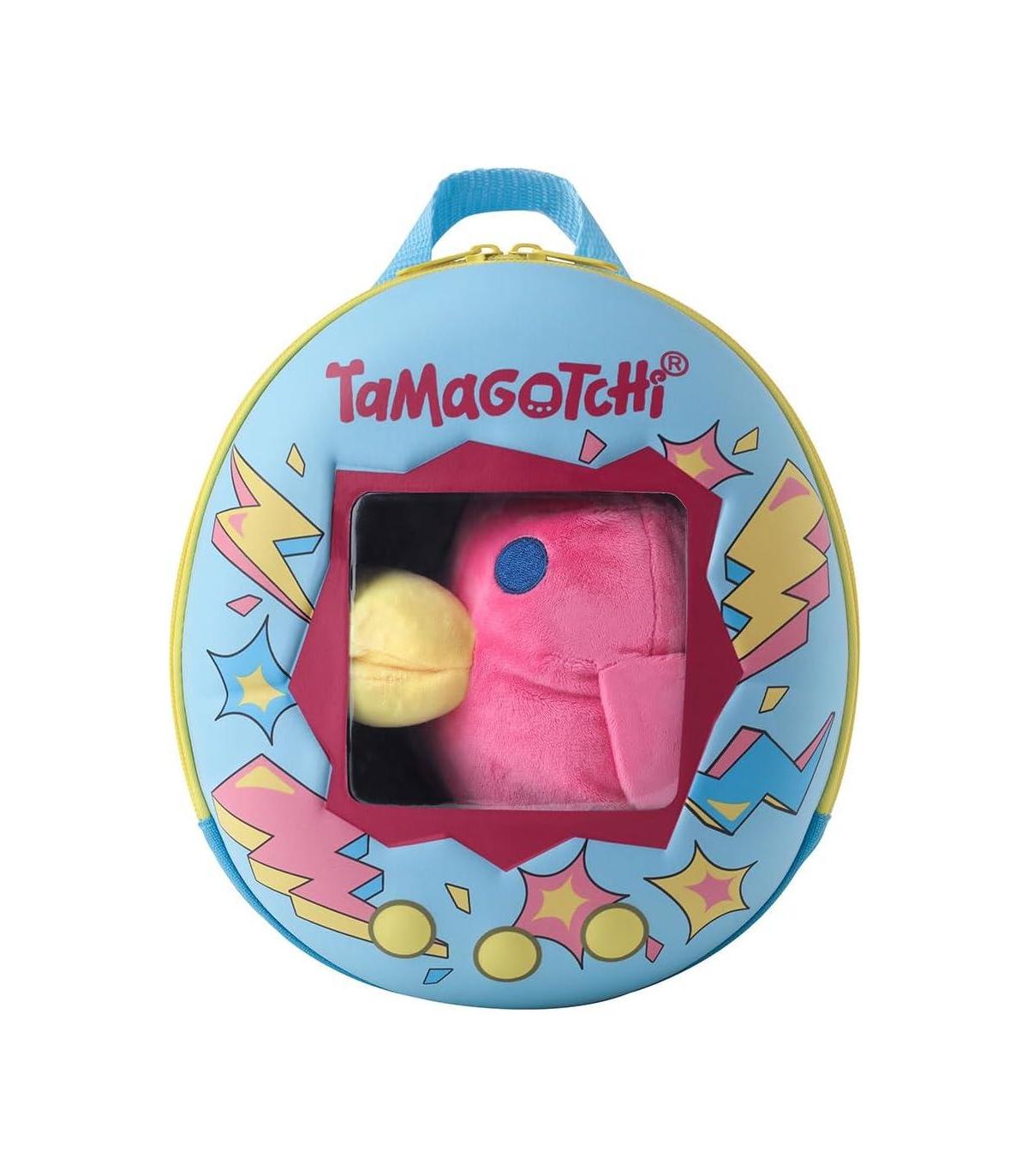 Puedes seguir llevándola contigo a todas partes gracias a la mochila Tamagotchi, donde puedes transportar a tu peluche donde quieras; incluye asas para los hombros y cremallera para cerrar la mochila, además de una ventana para ver a tu bebé en el interior
