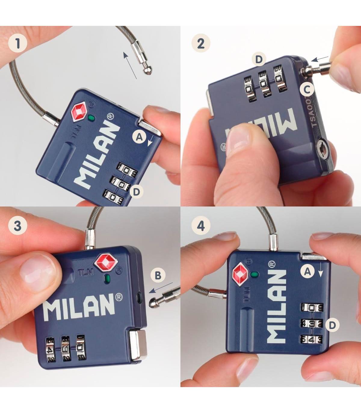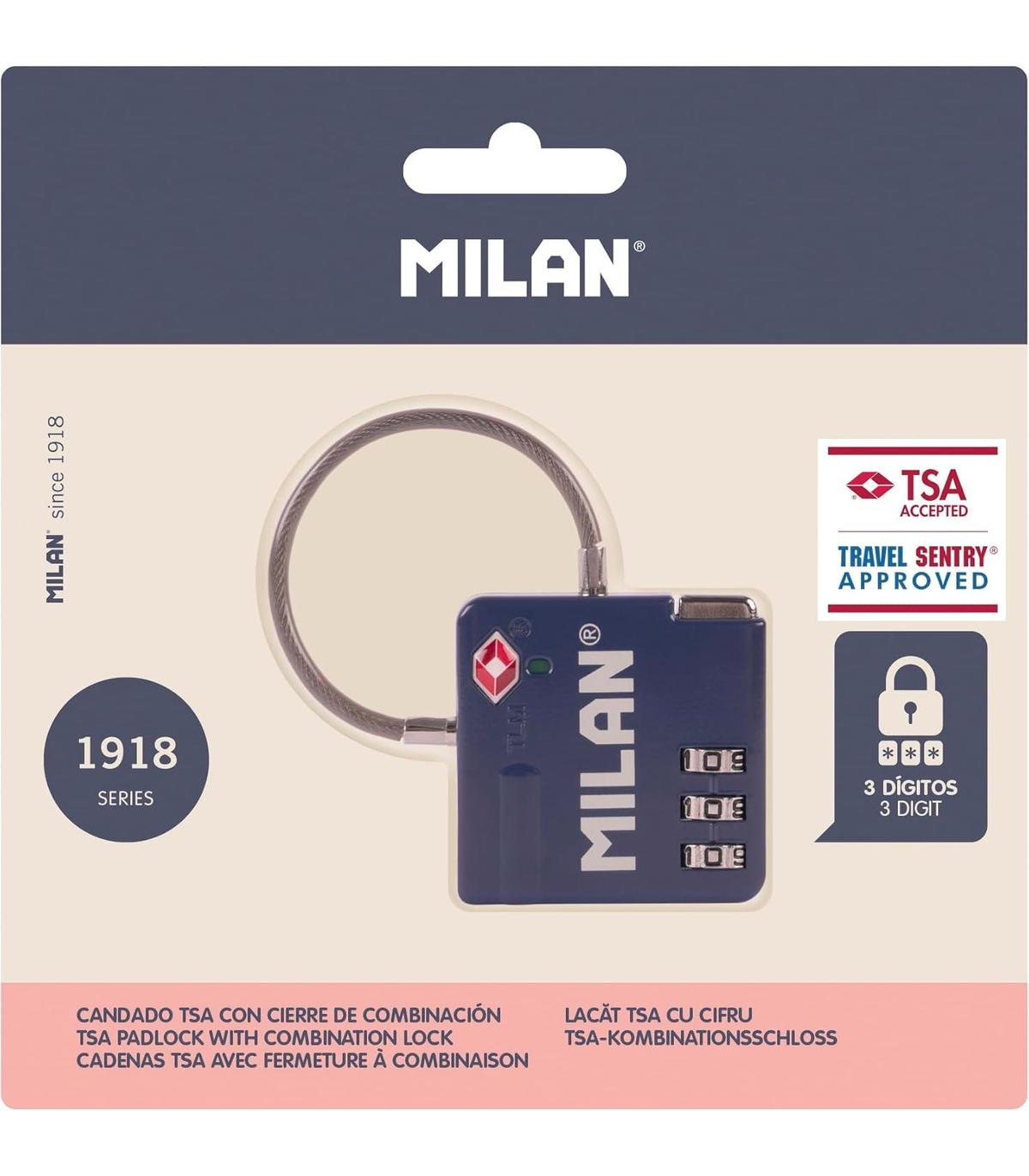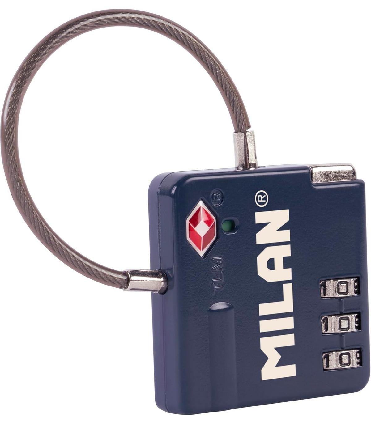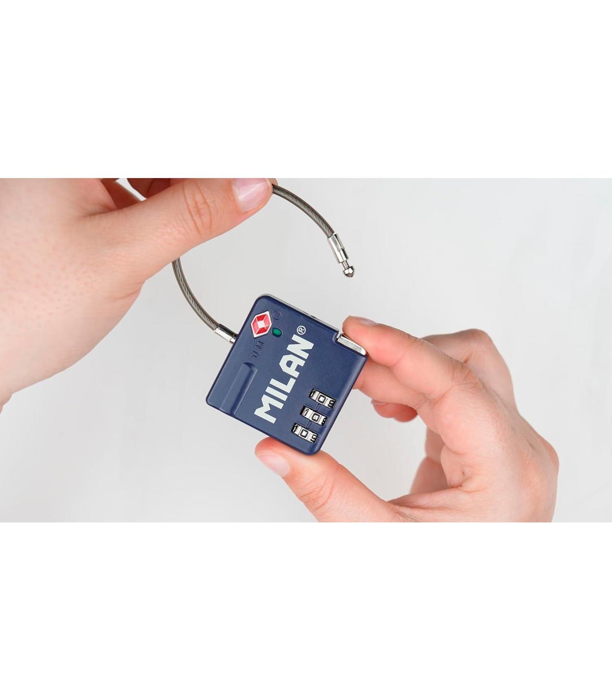 Candado metálico aprobado por la TSA (Travel Sentry Approved) que permite abrir y cerrar el candado sin romperlo al revisar el equipaje.