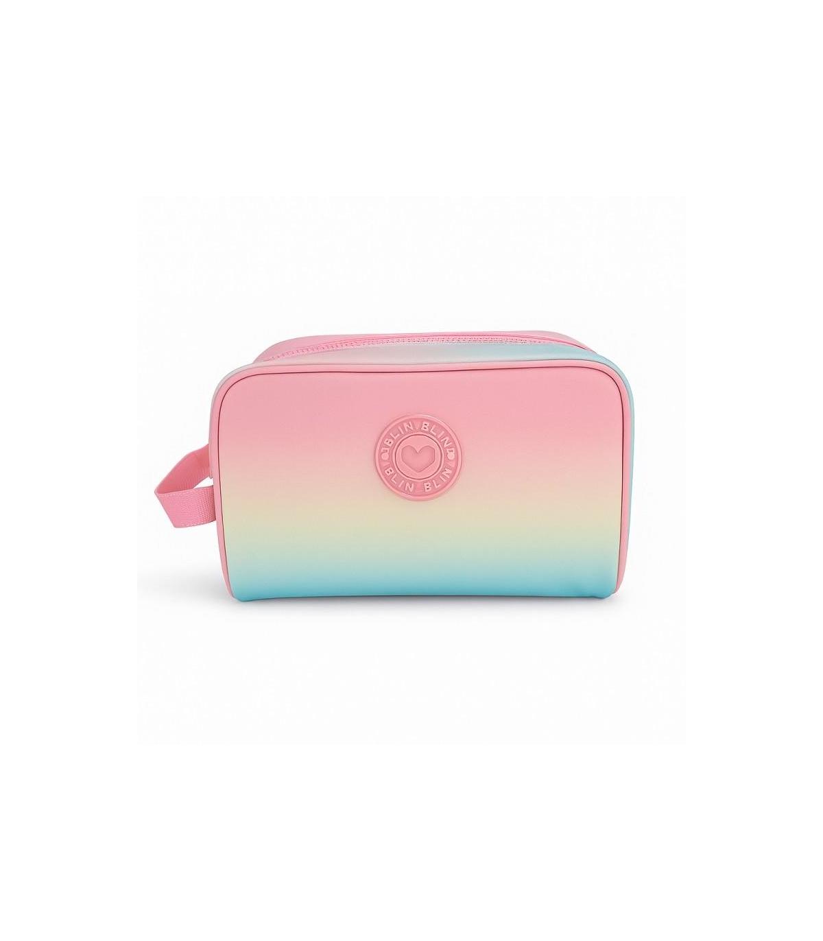 Neceser Blin Blin Gradient Pink. Interior totalmente forrado. Acabados y cremalleras de alta calidad. Buena sensación de tacto. Material repetente al agua. Resistente y espacioso. Detalle de logo en goma.