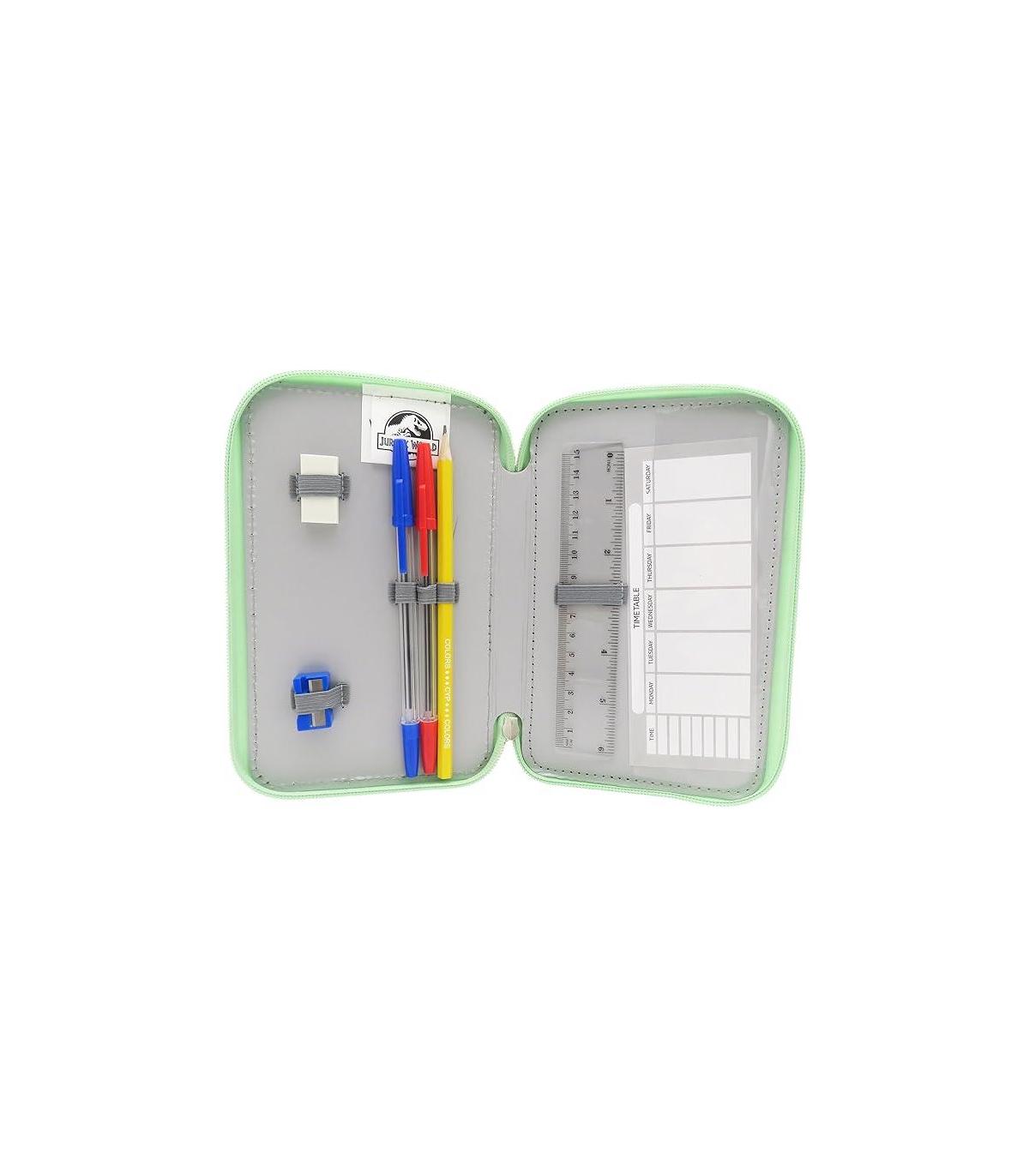 JURASSIC WORLD: Completo estuche con 3 cremalleras y 3 compartimentos. Tamaño perfecto y compartimentos espaciosos para poder guardar y organizar todo tipo de material de colegio, oficina o universidad