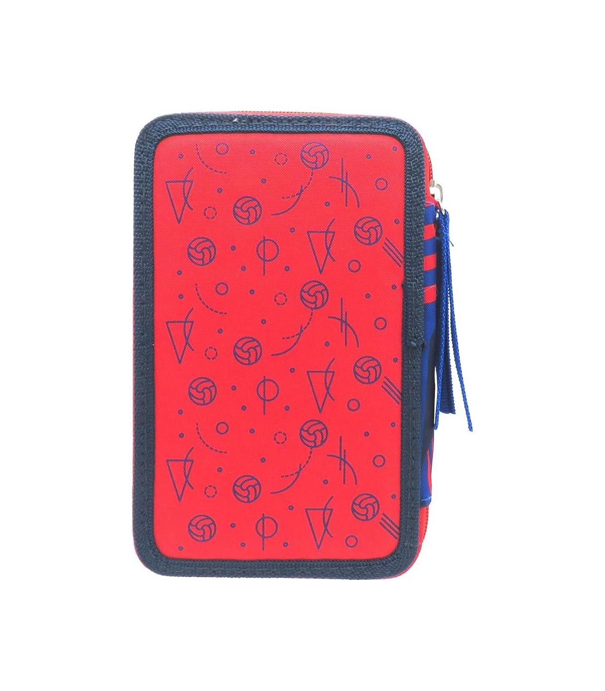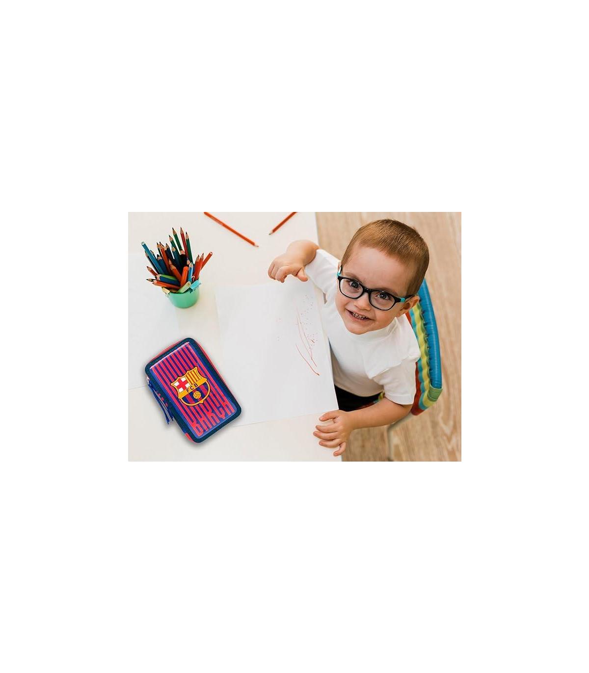 Barcelona Plumier 3 Pisos FC BARCELONA: Completo estuche con 3 cremalleras y 3 compartimentos. Tamaño perfecto y compartimentos espaciosos para poder guardar y organizar todo tipo de material de colegio, oficina o universidad CARACTERÍSTICAS: Plumier de 3 pisos con 39 piezas compuesto 16 lápices de colores, 16 rotuladores, 2 bolígrafos, 1 lápiz, 1 goma, 1 sacapuntas, 1 regla y 1 horario escolar. Las cintas permiten abrirlo y cerrarlo de manera rápida y sencilla. PRODUCTO DE CALIDAD: Todos nuestros productos están diseñados y fabricados siguiendo con los más exigentes controles de calidad. Utilizamos materiales resistentes y de gran calidad, poniendo gran esfuerzo en crear diseños especiales para ti. REGALO ORIGINAL: Este producto es ideal para regalar tanto a niños como a jóvenes. Es el regalo perfecto para navidad, un cumpleaños o una fecha especial. MARCA: se trata de un producto licenciado oficial y 100% original
