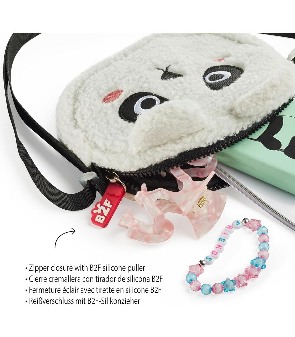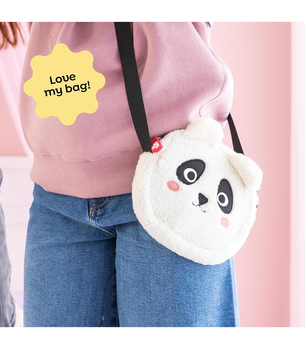 BOLSITO INFANTIL DISEÑO PANDA ?? en color blanco con orejitas negras y carita bordada que transmite ternura. Un diseño encantador de Back2Fun para niñas que adoran a los pandas y los complementos suaves.