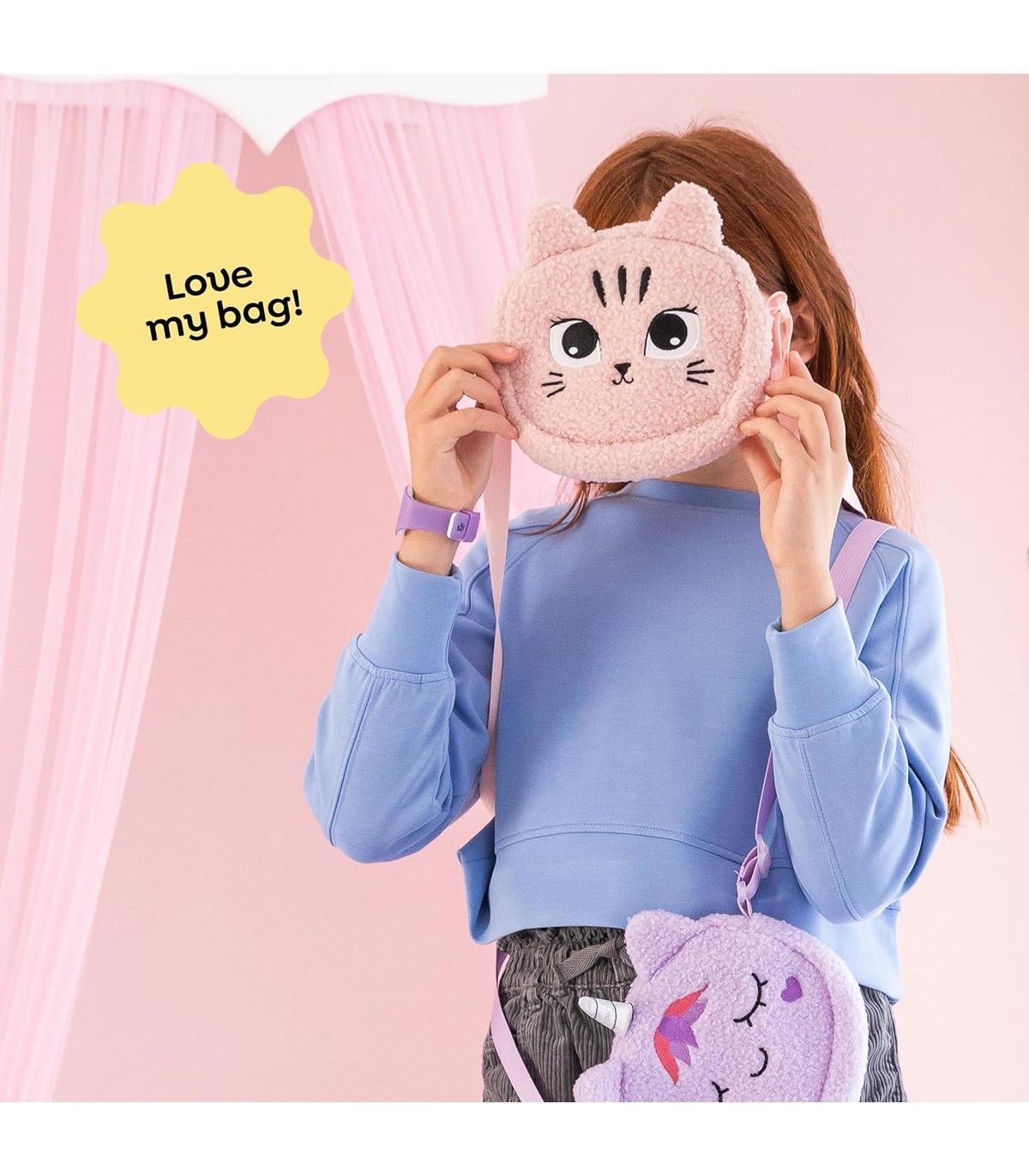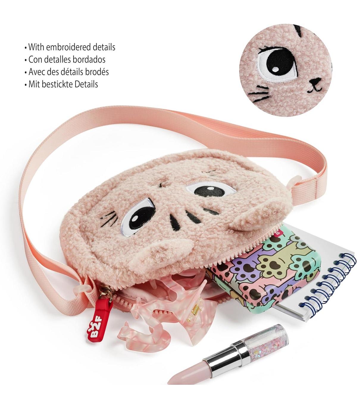 ?? BOLSITO INFANTIL DISEÑO GATITA ?? con base rosa suave, orejitas redondeadas y bigotes bordados. Ideal para fans de los gatitos y la papelería bonita de Back2Fun con estilo tierno.