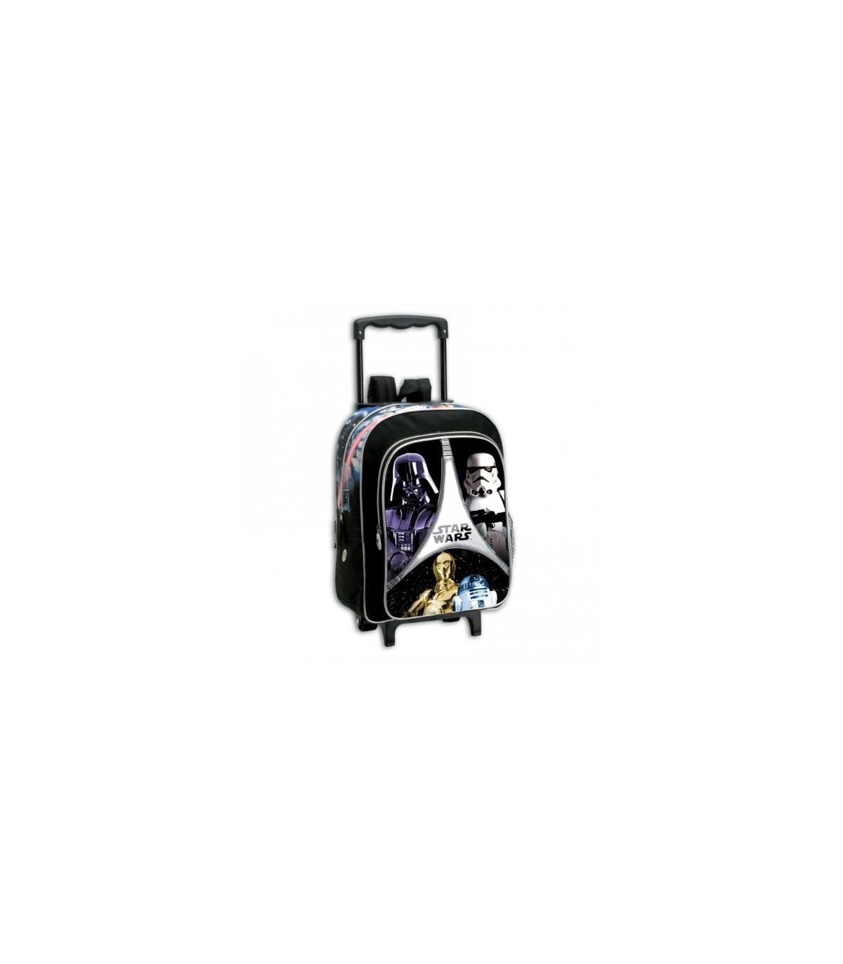 Mochila con ruedas Star Wars 36 cm - Mochila con ruedas: Star Wars - 36 cm - De camino al jardín de infancia, o incluso a la escuela primaria, ofrece este bolso negro con los personajes de la saga Star Wars. Tiene dos correas anchas acolchadas para mayor comodidad y excelente sujeción, y ajustable para adaptarse al tamaño de tu hijo. Sus dos pequeñas ruedas, su asa retráctil y su ligereza permitirán que tu hijo la lleve a todas partes y con mucha facilidad. En su gran bolsillo central, que se puede cerrar con una cremallera