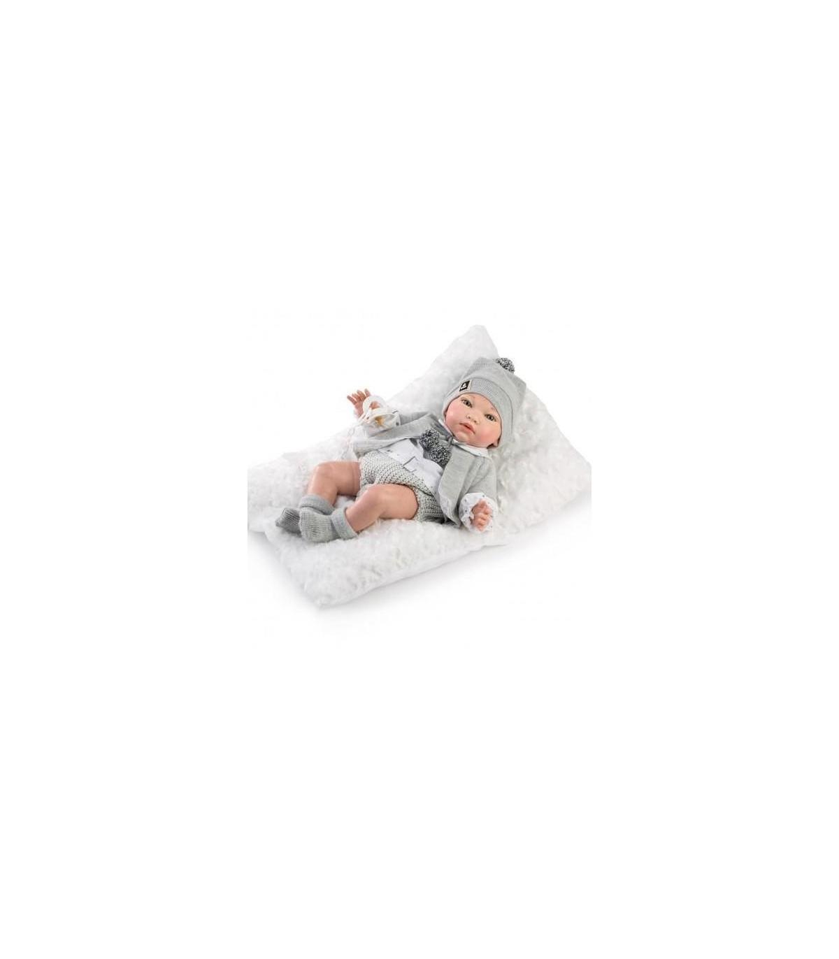 ¡Cuídalo como un Bebé recién nacido de verdad! El Muñeco Bebé Reborn de Muñecas Guca mide 42 cm. Manu viene con una camisa blanca con detalles preciosos, chaleco gris de lana con dos pompones, gorro gris con pompom, chupete y unos peucos grises que hacen juego con todo el conjunto. Acuesta a tu muñeco bebé con el cojín que trae. El muñeco está fabricado totalmente de manera artesanal. Cuerpo fabricado en tela y sus extremidades en vinilo de primera calidad. No tiene pelo. Pintado a mano.