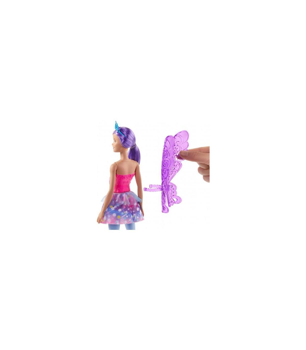 Barbie Dreamtopia Muñeca hada, pelo morado, con alas alas y corona (Mattel GJK00) - 3 años+